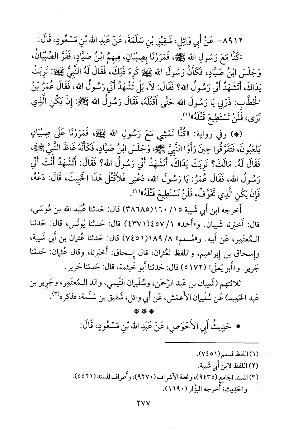 ٨٩١٢ - عن أبي وائل شقيق بن سلمة، عن عبد الله بن مسعود، قال:
