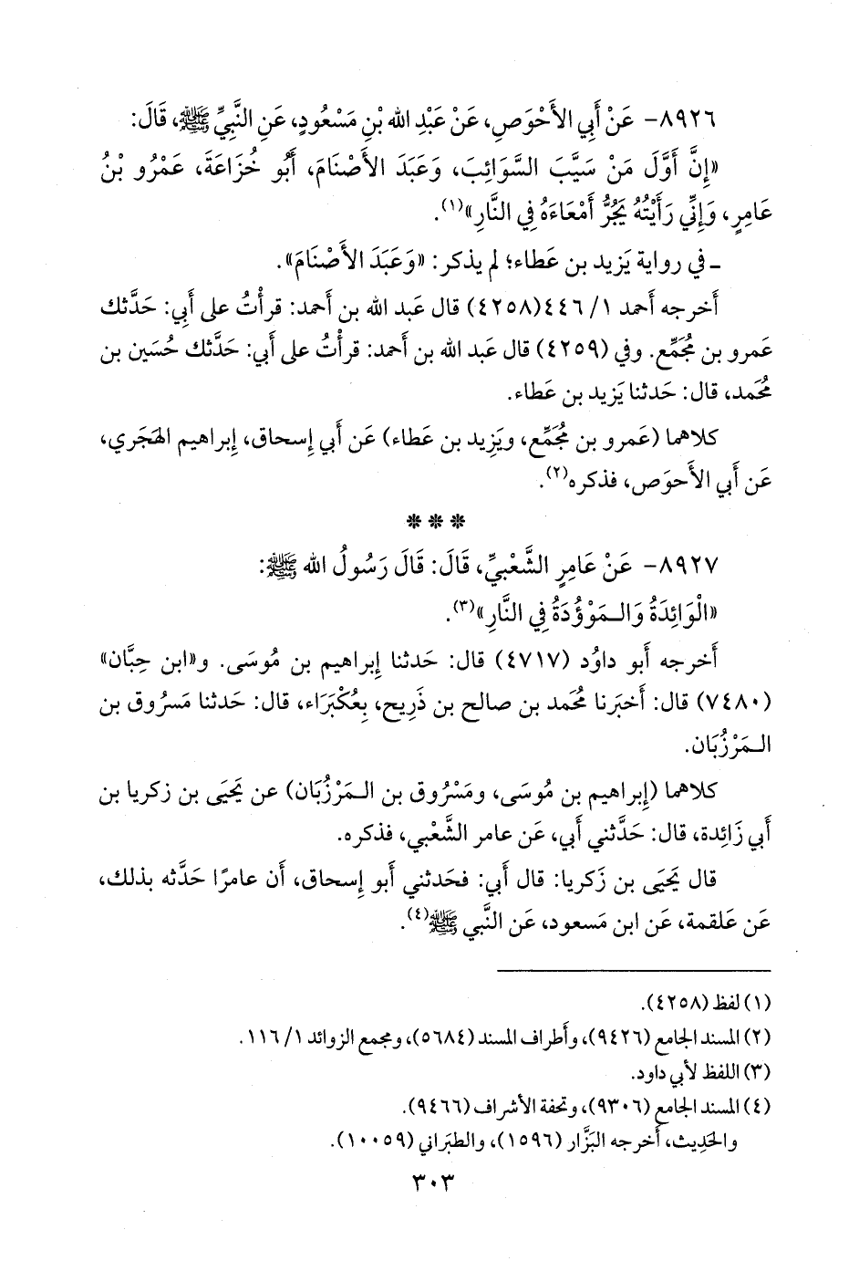٨٩٢٦ - عن أبي الأحوص، عن عبد الله بن مسعود، عن النبي صَلى الله عَليه وسَلم , قال: