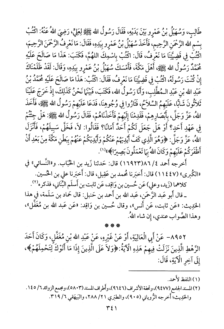(¬١) المسند الجامع (٩٤٧٨)، وأطراف المسند (٥٨١٦)، ومَجمَع الزوائد ٦/ ١٤٦، وإتحاف الخِيرَة المَهَرة (٤٤٠٨).
