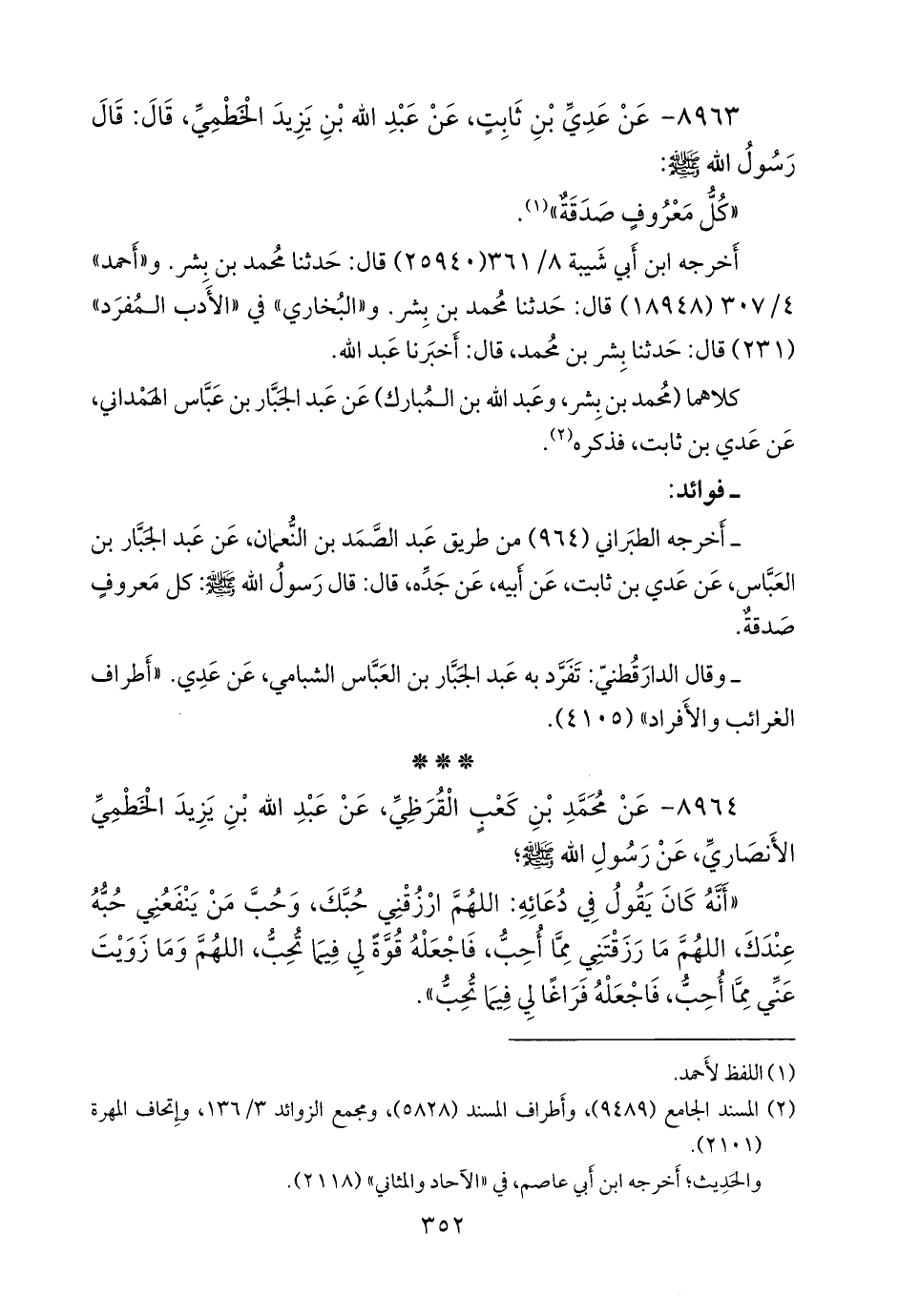 كلاهما (محمد بن بشر، وعبد الله بن المبارك) عن عبد الجبار بن عباس الهمداني، عن عَدي بن ثابت، فذكره (¬٢).