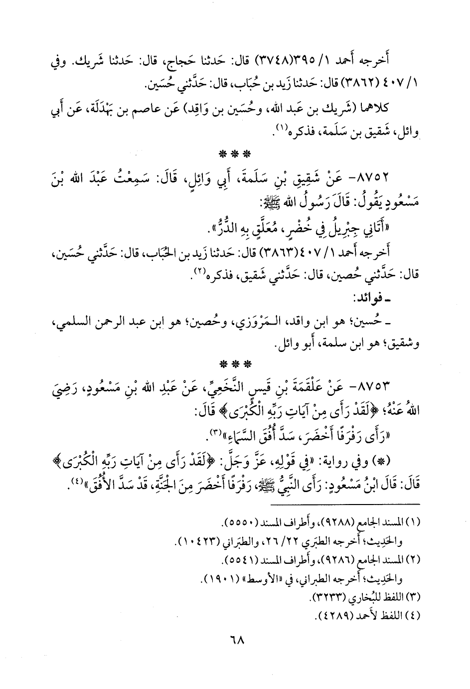 (¬٣) المسند الجامع (٩٢٩٠)، وتحفة الأشراف (٩٤٢٩)، وأطراف المسند (٥٦٤١).