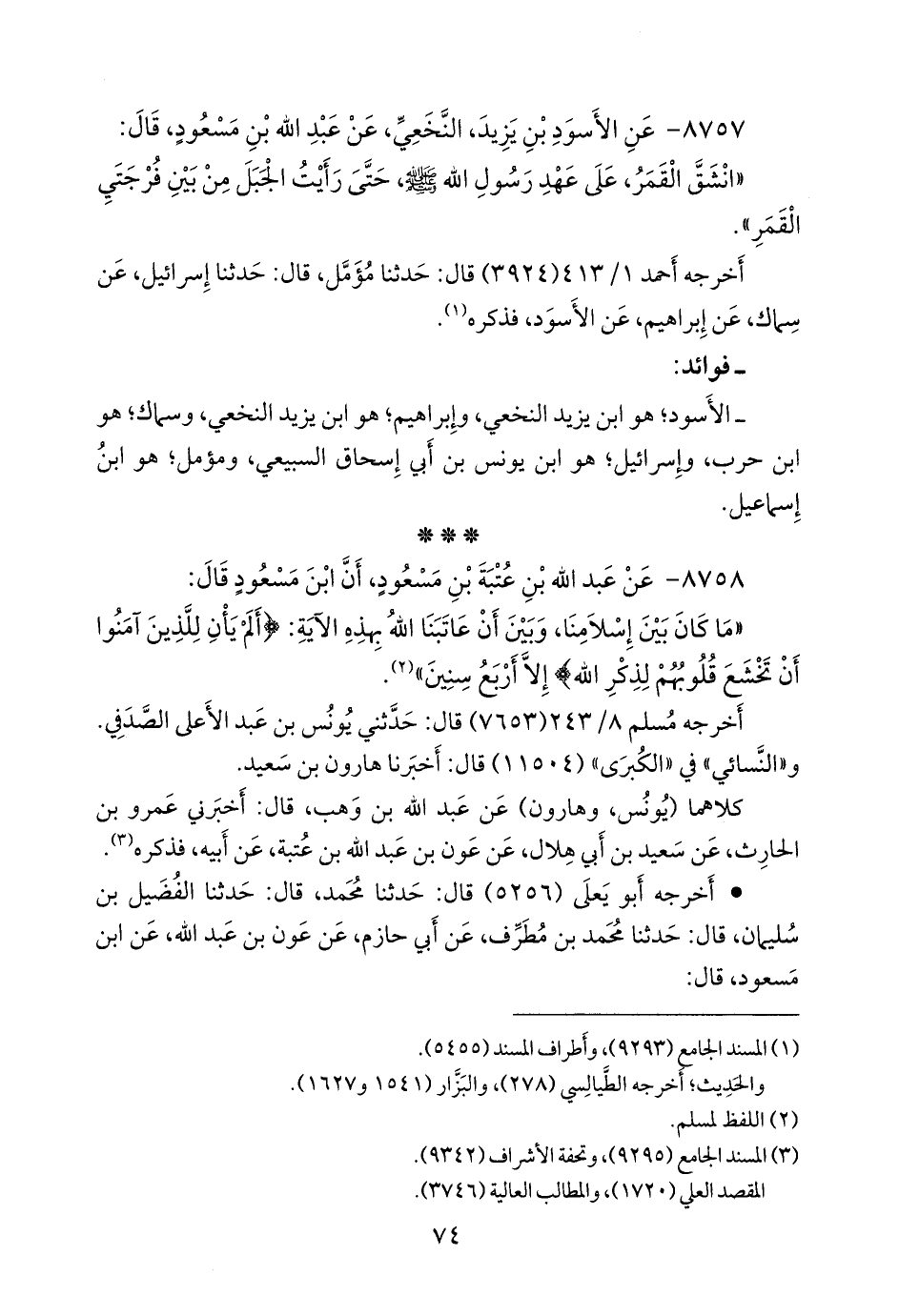 ٨٧٥٧ - عن الأسود بن يزيد، النَّخَعي، عن عبد الله بن مسعود، قال:
