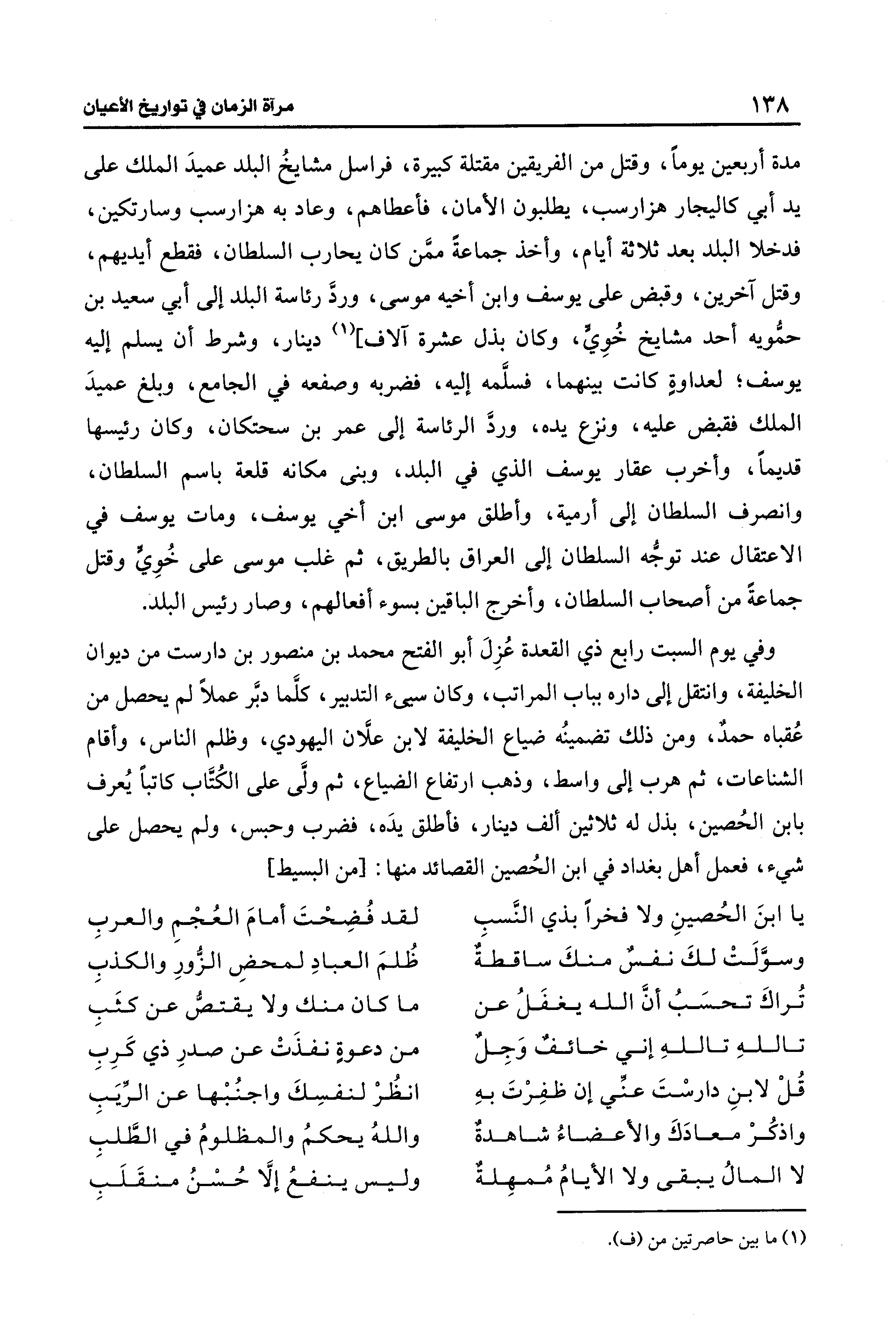يا ابنَ الحُصينِ ولا فخرًا بذي النَّسبِ ... لقد فُضِحْتَ أمامَ العُجْمِ والعربِ