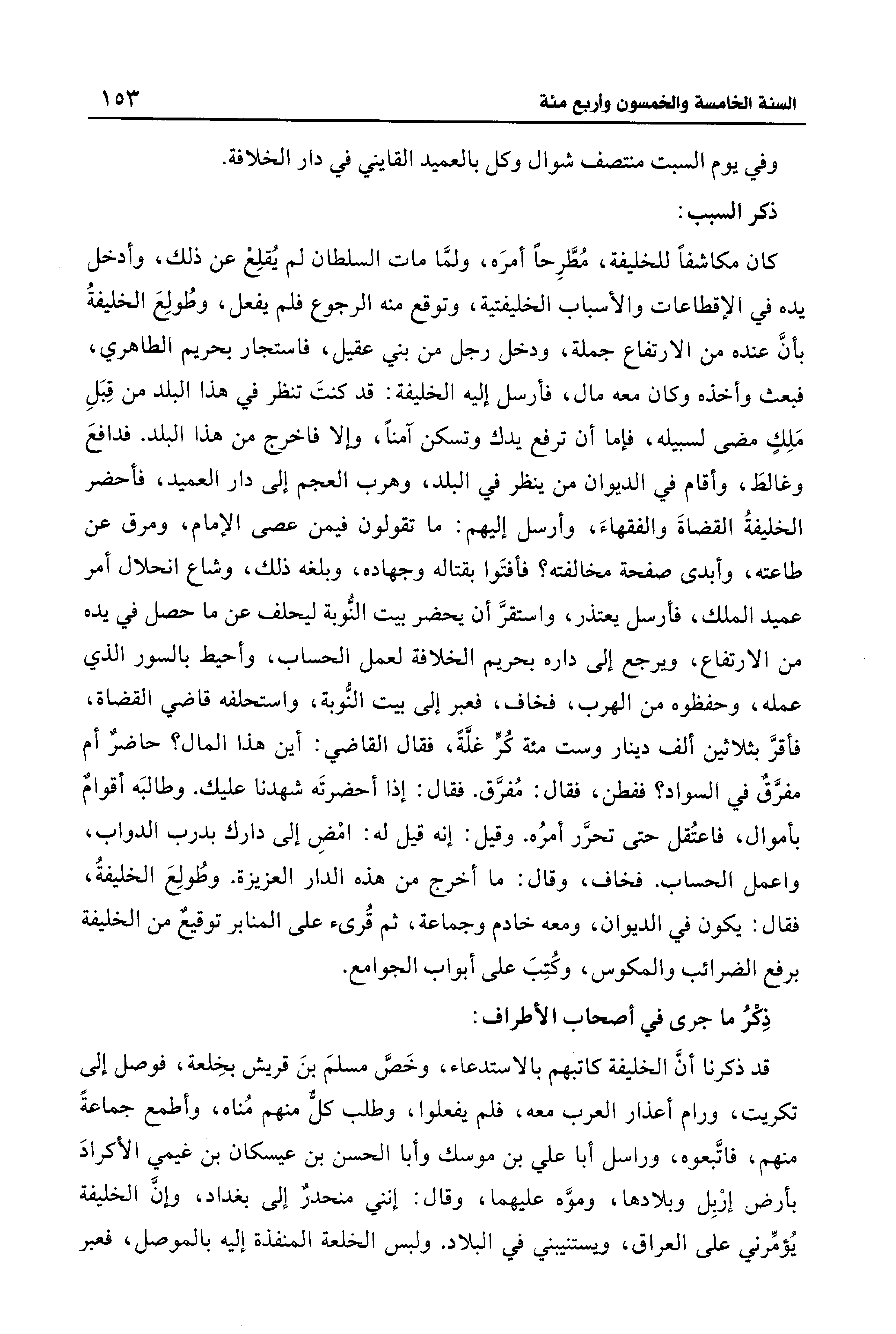 وفي يوم السبت منتصف شوال وكل بالعميد القايني في دار الخلافة.