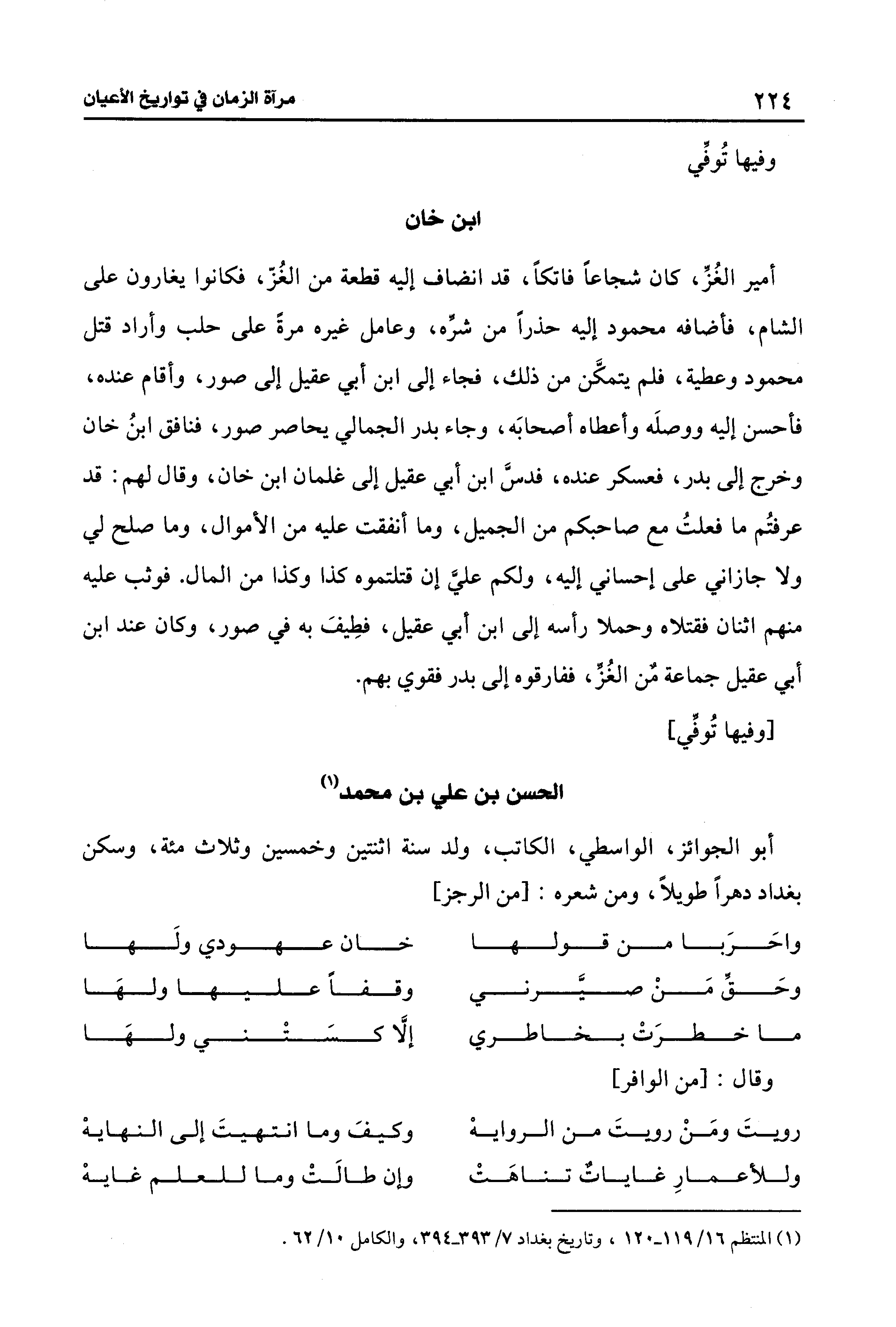 (¬1) المنتظم 16/ 119 - 120، وتاريخ بغداد 7/ 393 - 394، والكامل 10/ 62.
