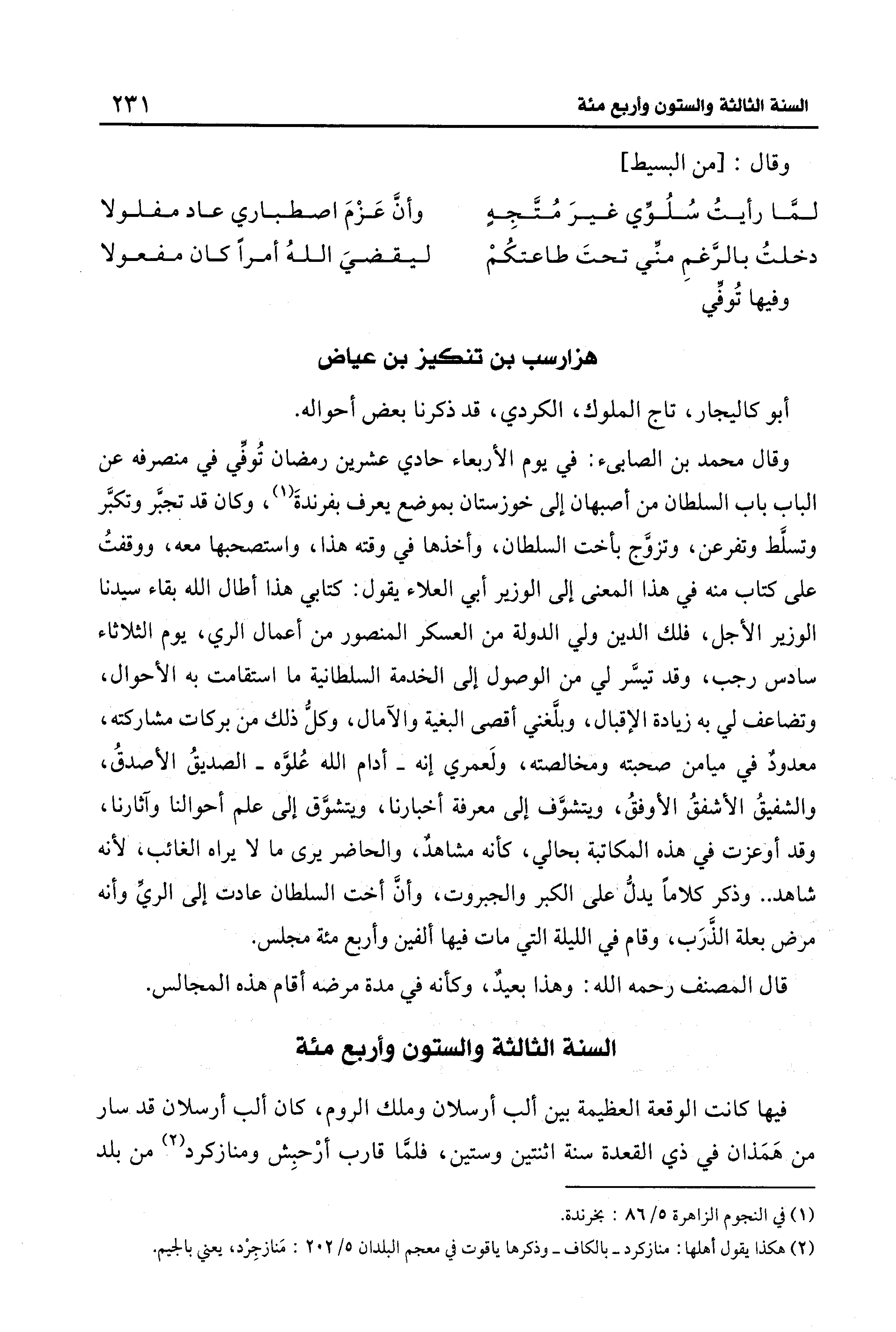 (¬2) هكذا يقول أهلها: منازكرد -بالكاف- وذكرها ياقوت في معجم البلدان 5/ 202: مَنازجِرْد، يعني بالجيم.