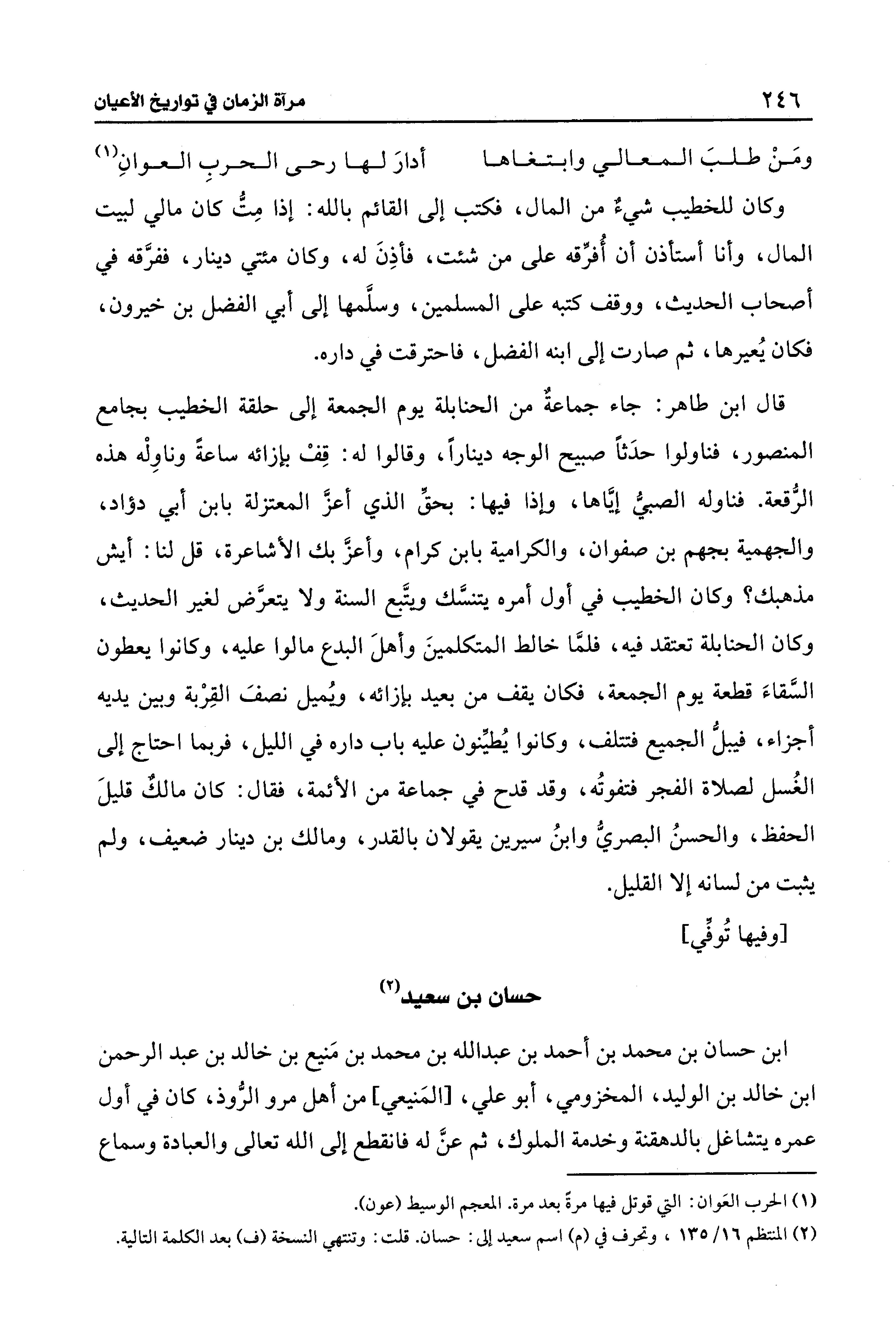 (¬2) المنتظم 16/ 135، وتحرف في (م) اسم سعيد إلى: حسان. قلت: وتنتهي النسخة (ف) بعد الكلمة التالية.