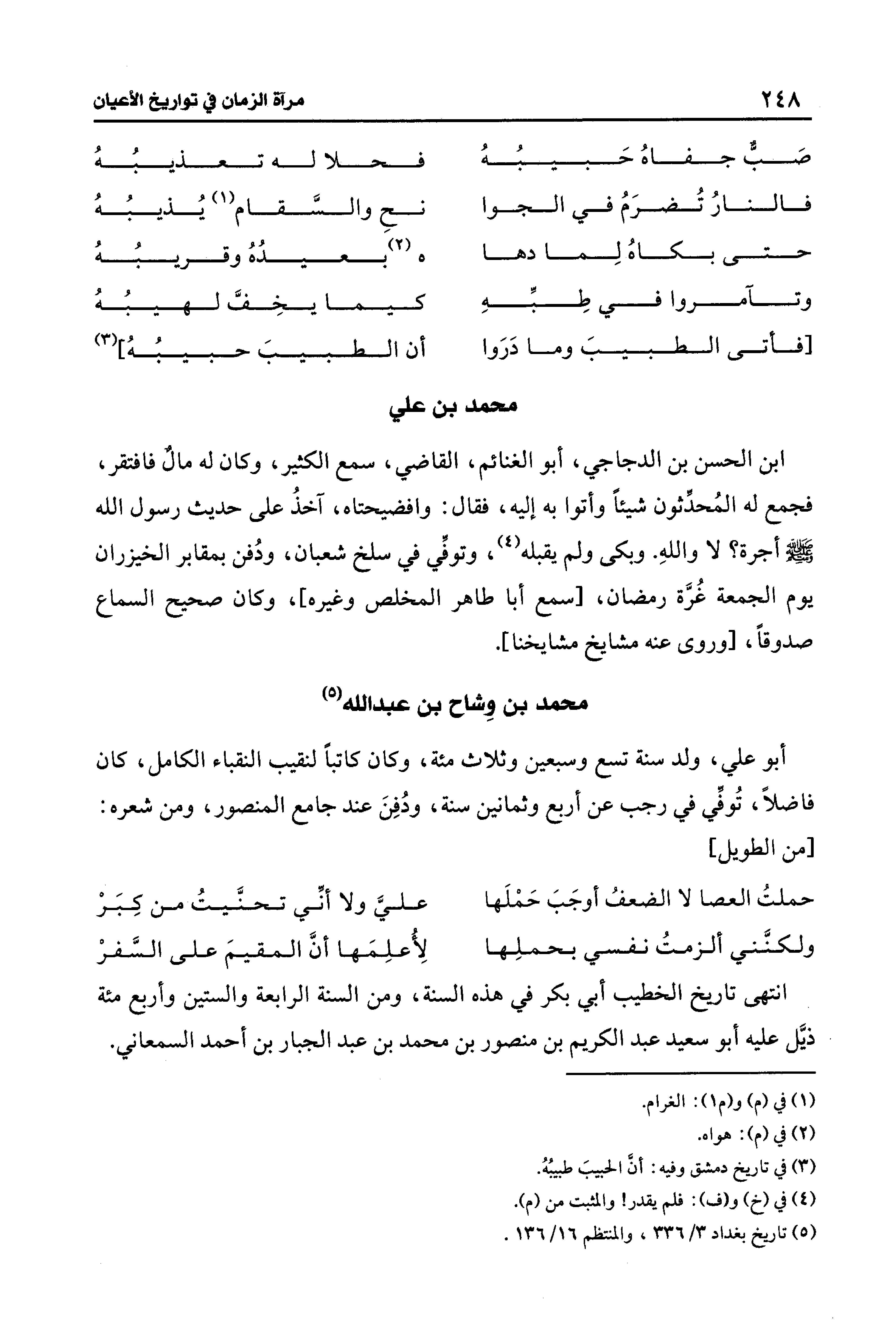 (¬5) تاريخ بغداد 3/ 336، والمنتظم 16/ 136.