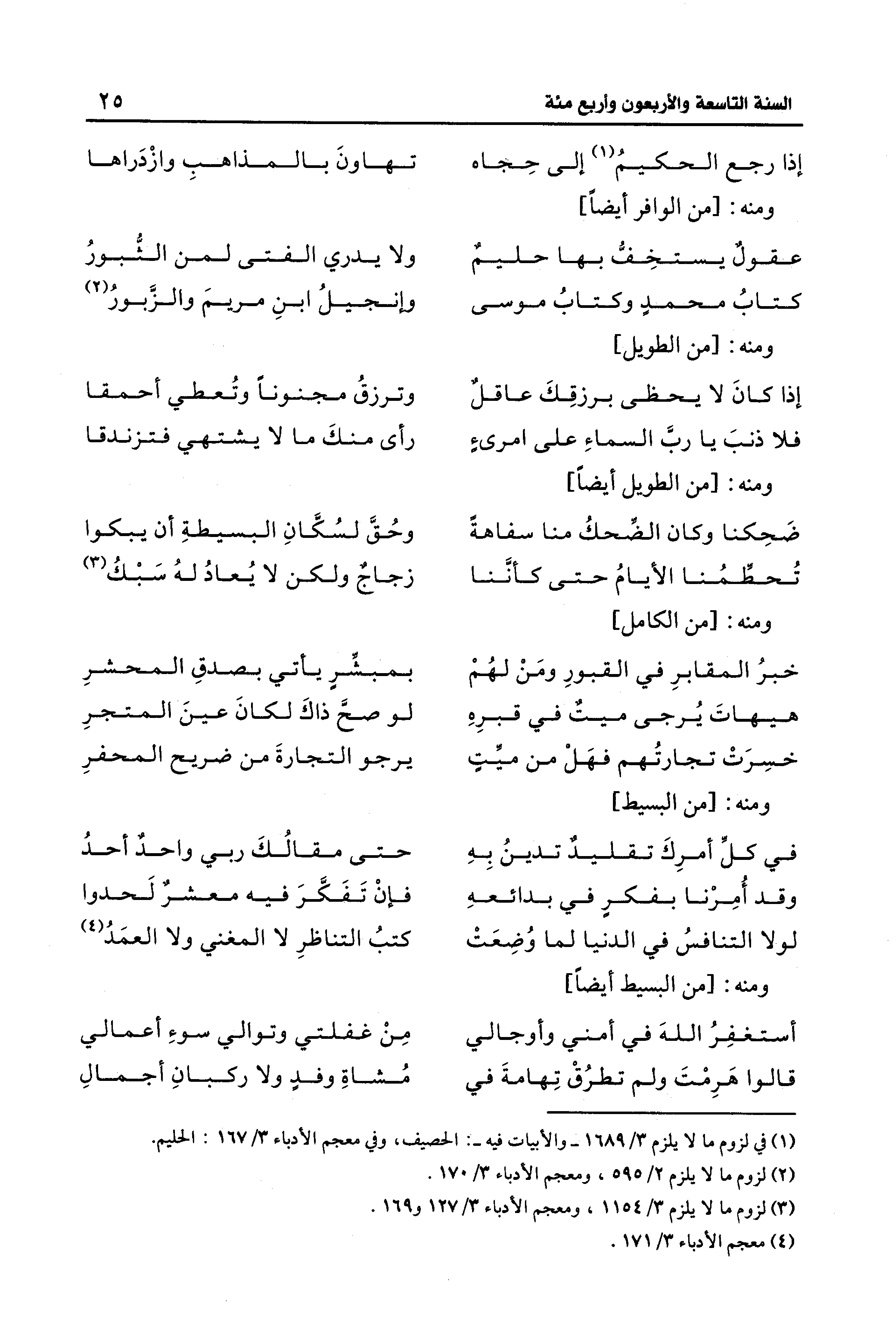 (¬1) في لزوم ما لا يلزم 3/ 1689 - والأبيات فيه-: الحصيف، وفي معجم الأدباء 3/ 167: الحليم.