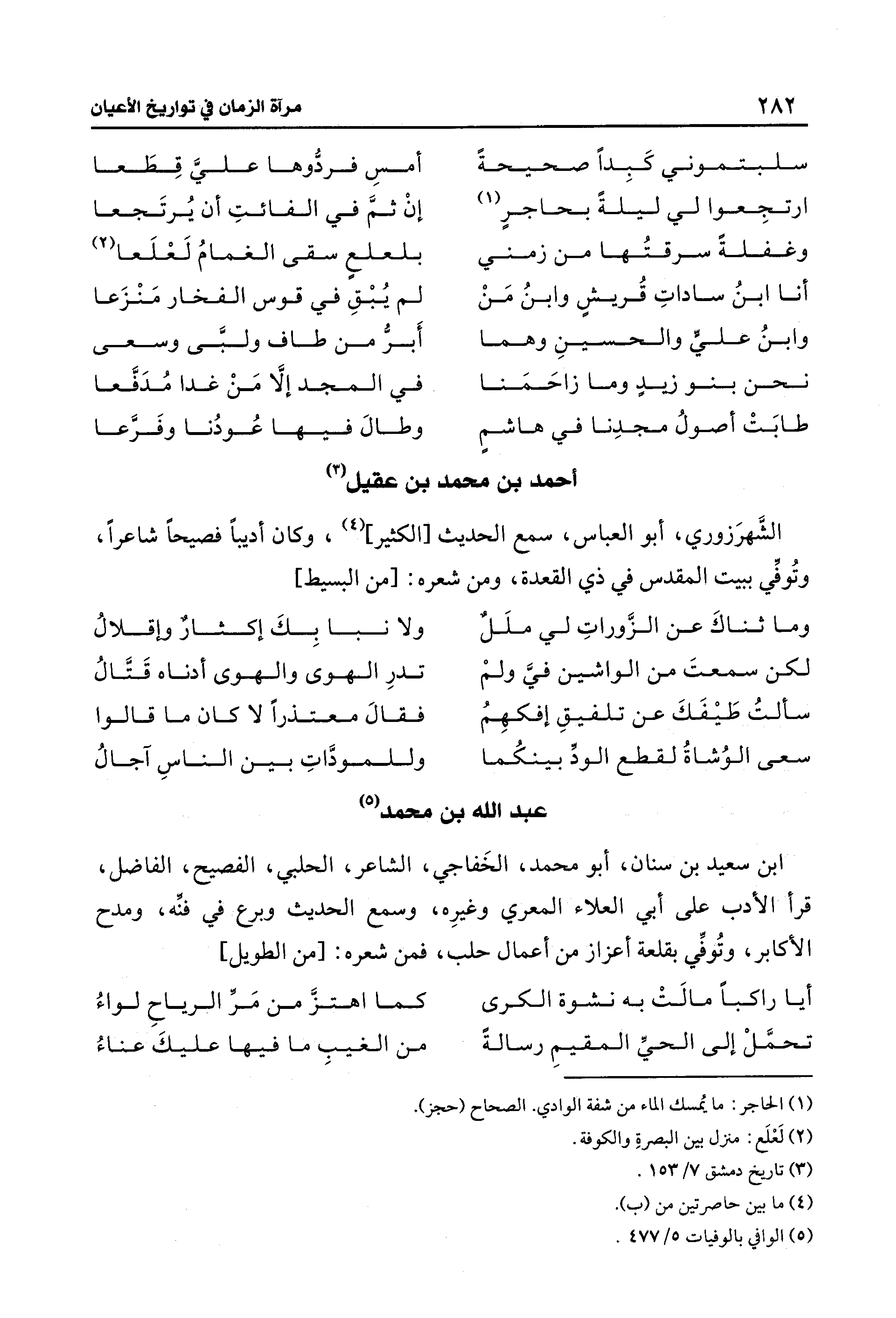 ابن سعيد بن سنان، أبو محمد، الخَفاجي، الشاعر، الحلبي، الفصيح، الفاضل، قرأ الأدب على أبي العلاء المعري وغيرِه، وسمع الحديث وبرع في فنِّه، ومدح الأكابر، وتُوفِّي بقلعة أعزاز من أعمال حلب، فمن شعره: [من الطويل]