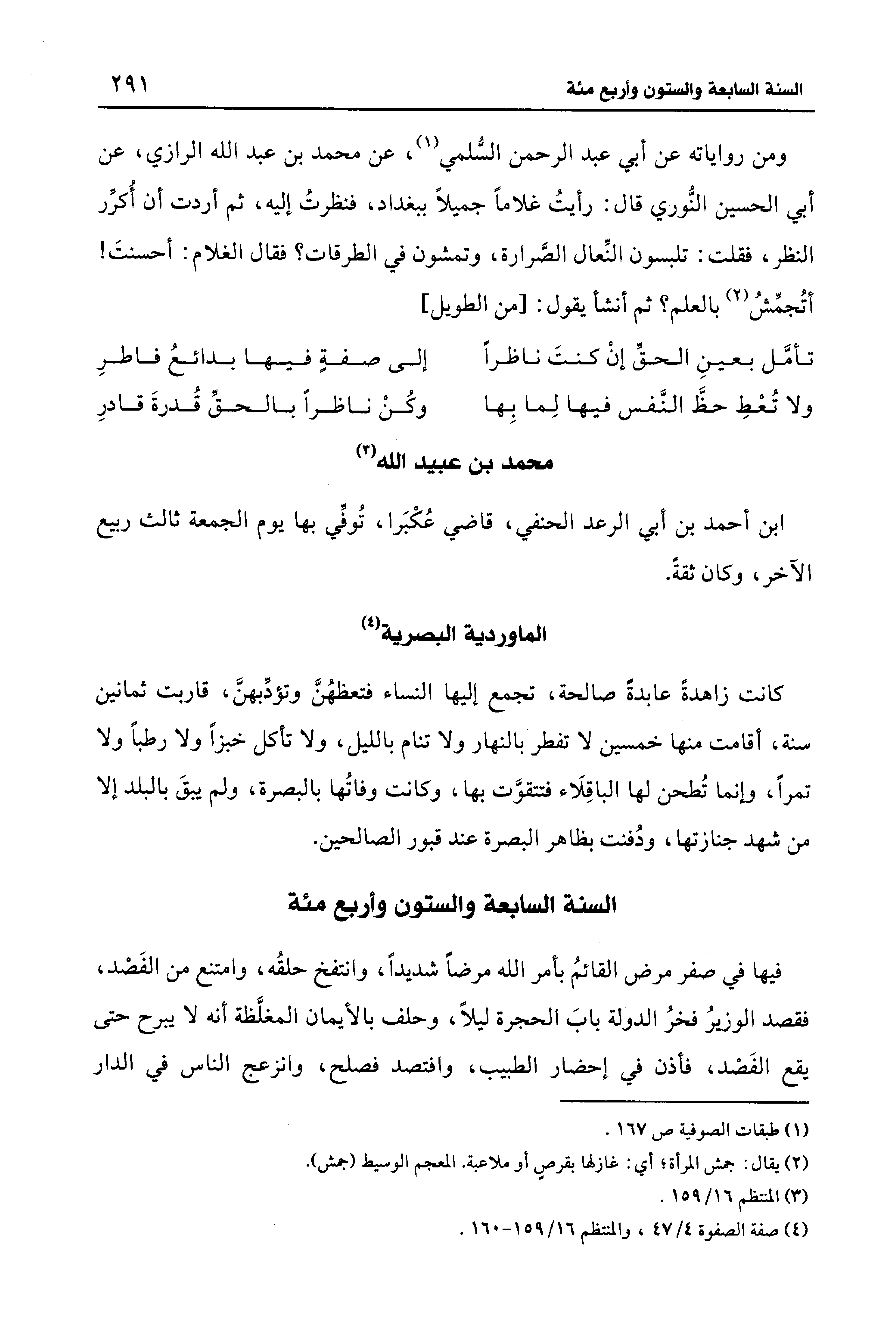 (¬4) صفة الصفوة 4/ 47، والمنتظم 16/ 159 - 160.