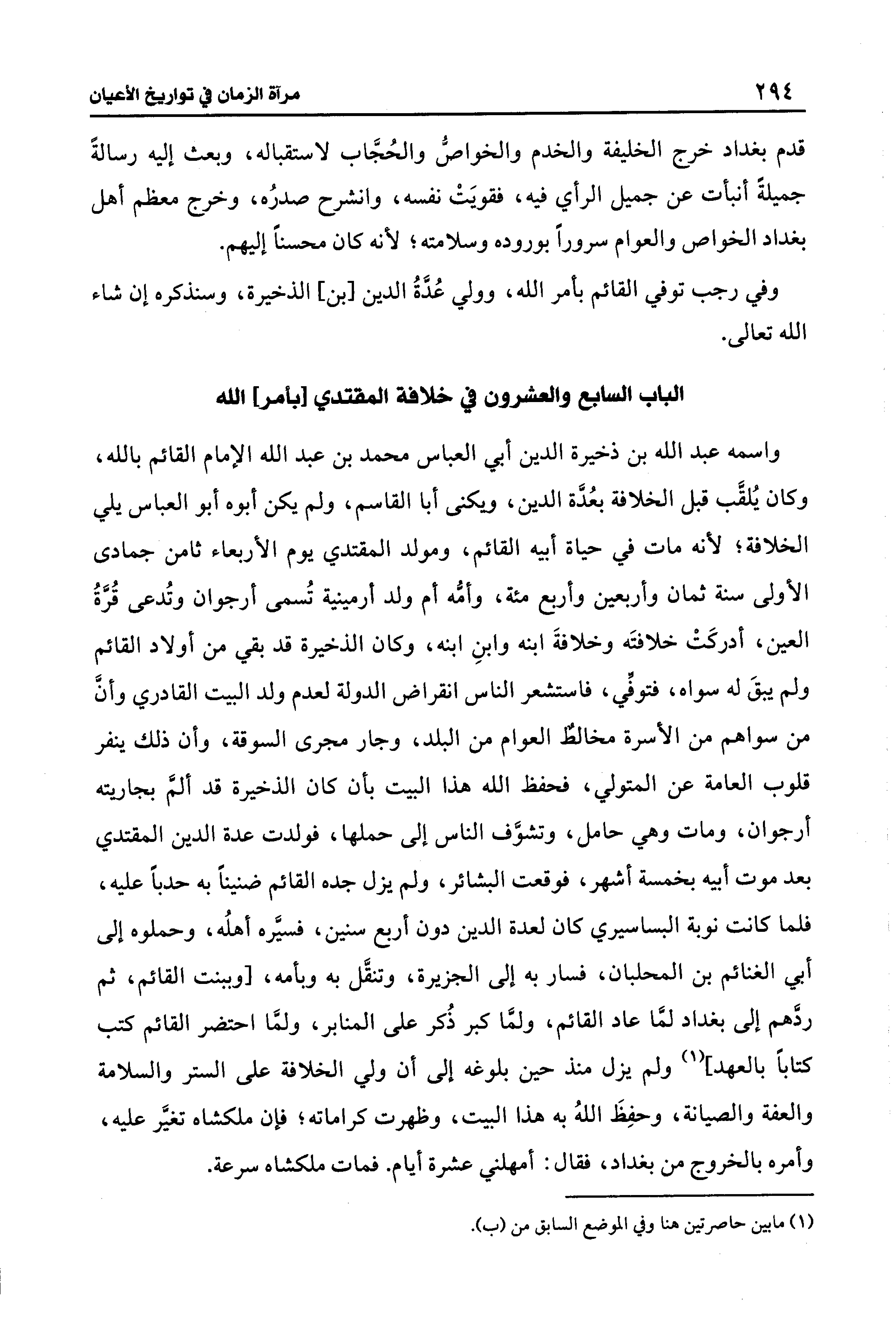 الباب السابع والعشرون في خلافة المقتدي [بأمر] الله