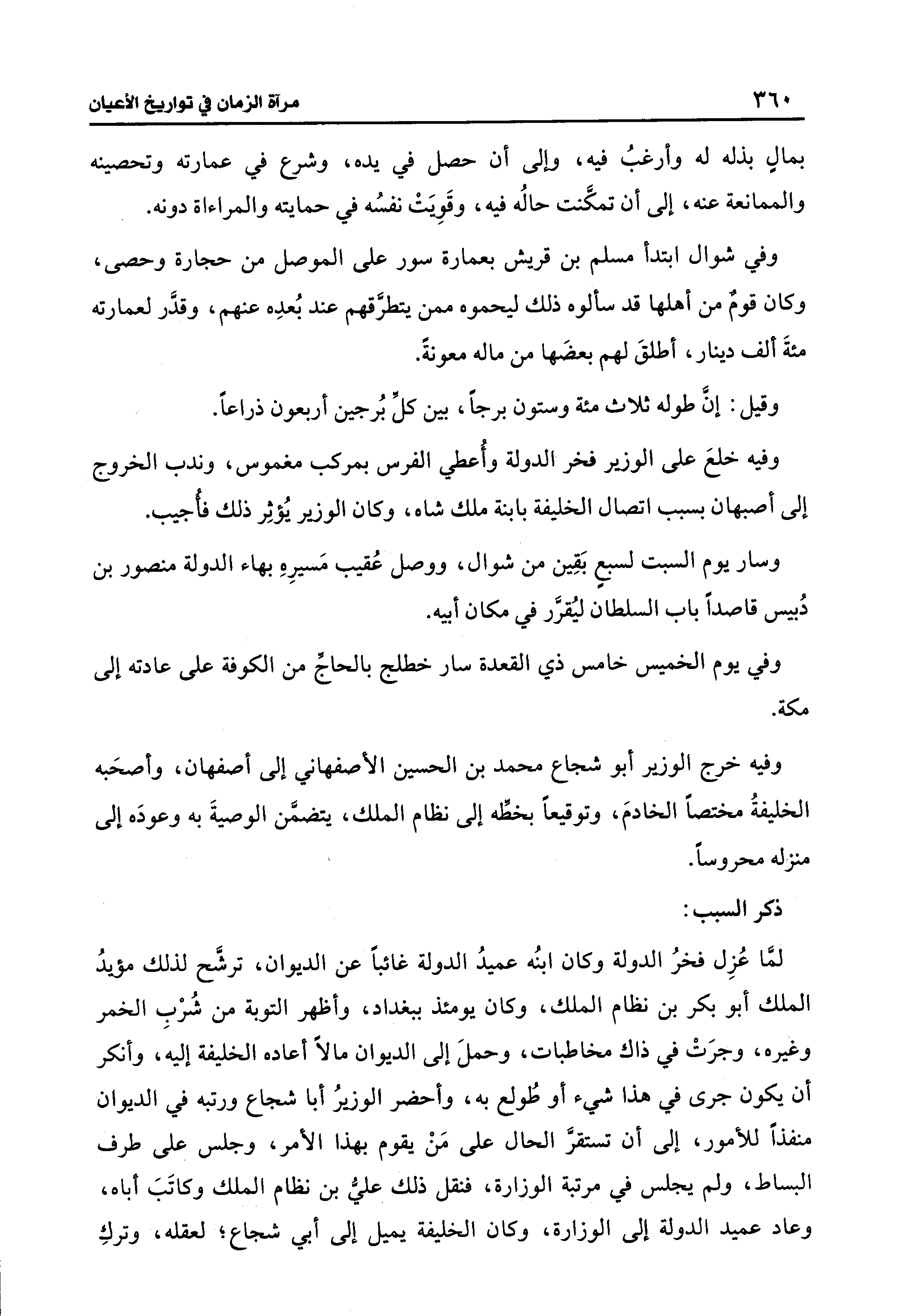 وفيه خرج الوزير أبو شجاع محمد بن الحسين الأصفهاني إلى أصفهان، وأصحَبه الخليفةُ مختصًا الخادمَ، وتوقيعًا بخطِّه إلى نظام الملك، يتضمَّن الوصيةَ به وعودَه إلى منزله محروسًا.