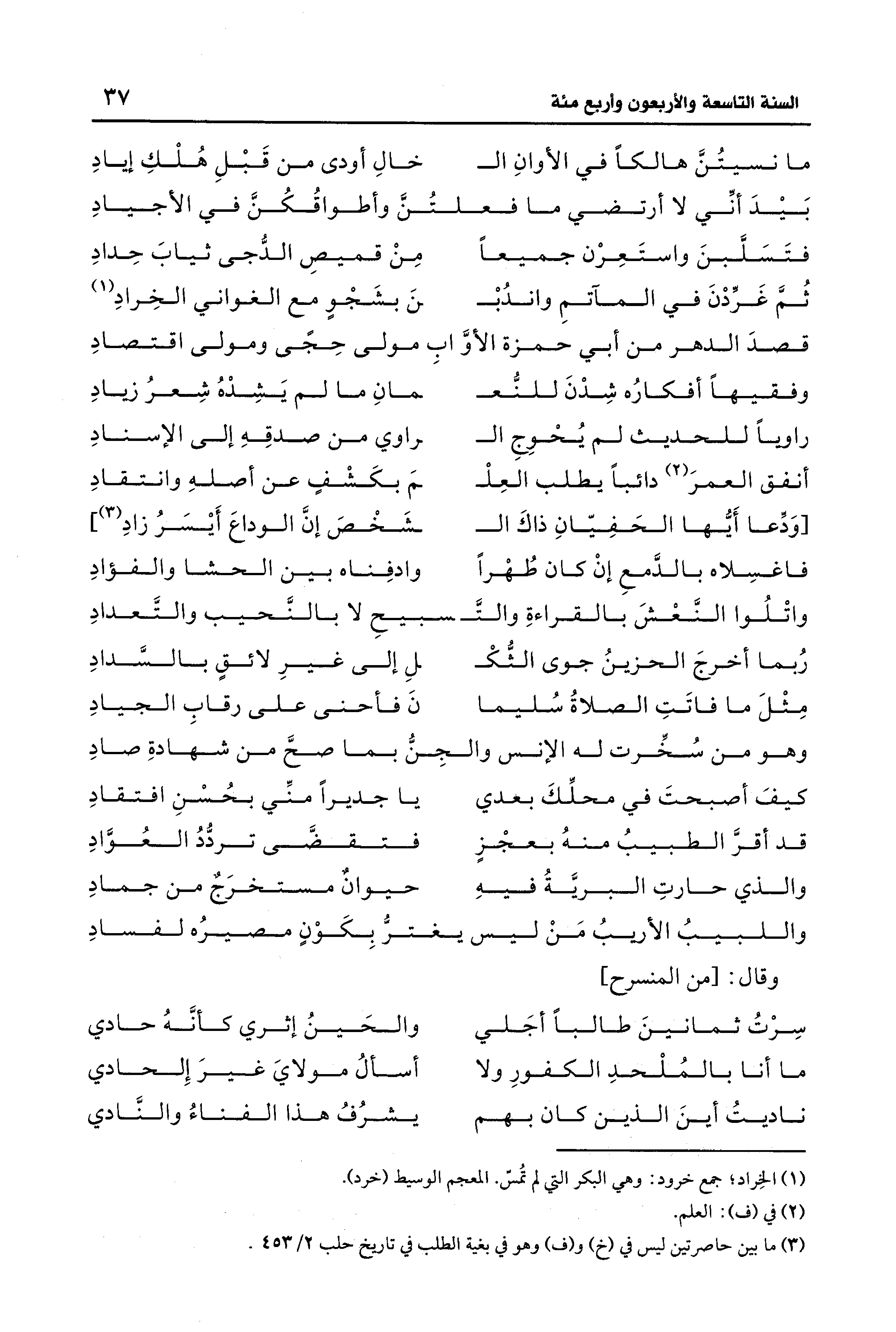ثُمَّ غَرِّدْنَ في المآتمِ واندُبْـ ... ـنَ بشَجْوٍ مع الغواني الخِرادِ (¬1)