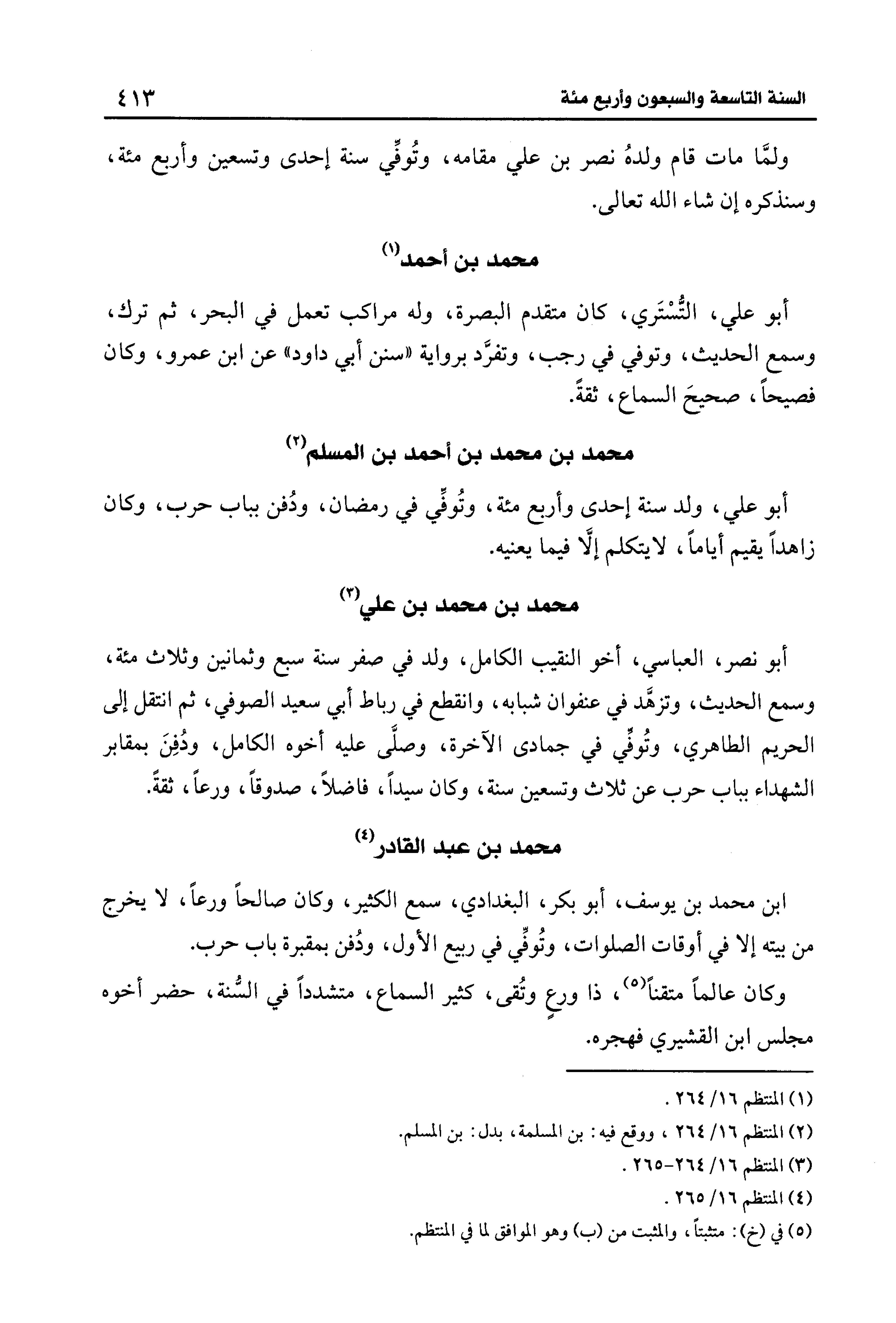 (¬2) المنتظم 16/ 264، ووقع فيه: بن المسلمة، بدل: بن المسلم.