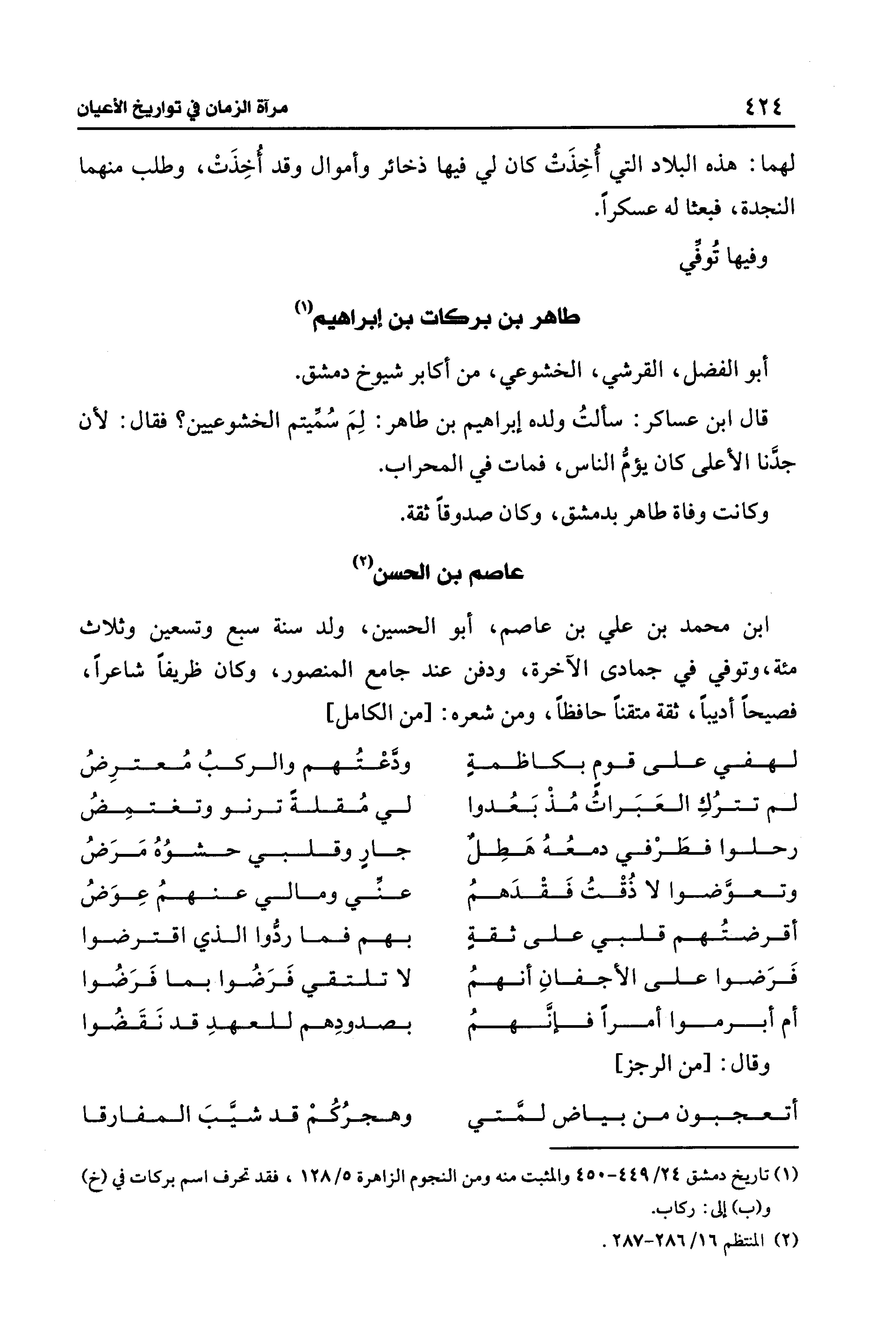 (¬1) تاريخ دمشق 24/ 449 - 405 والمثبت منه ومن النجوم الزاهرة 5/ 128، فقد تحرف اسم بركات في (خ) و (ب) إلى: ركاب.