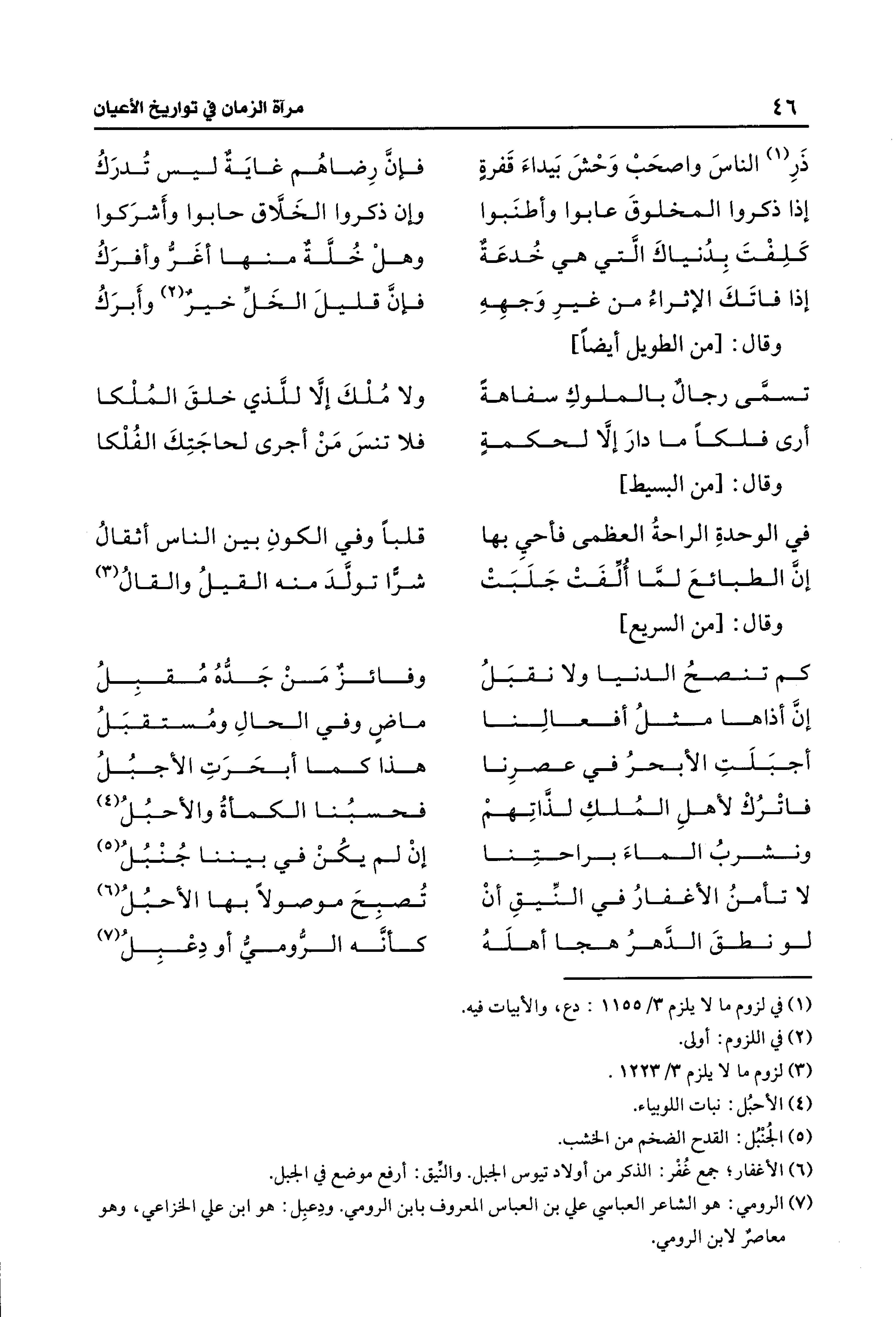(¬7) الرومي: هو الشاعر العباسي علي بن العباس المعروف بابن الرومي. ودِعبِل: هو ابن علي الخزاعي، وهو معاصرٌ لابن الرومي.