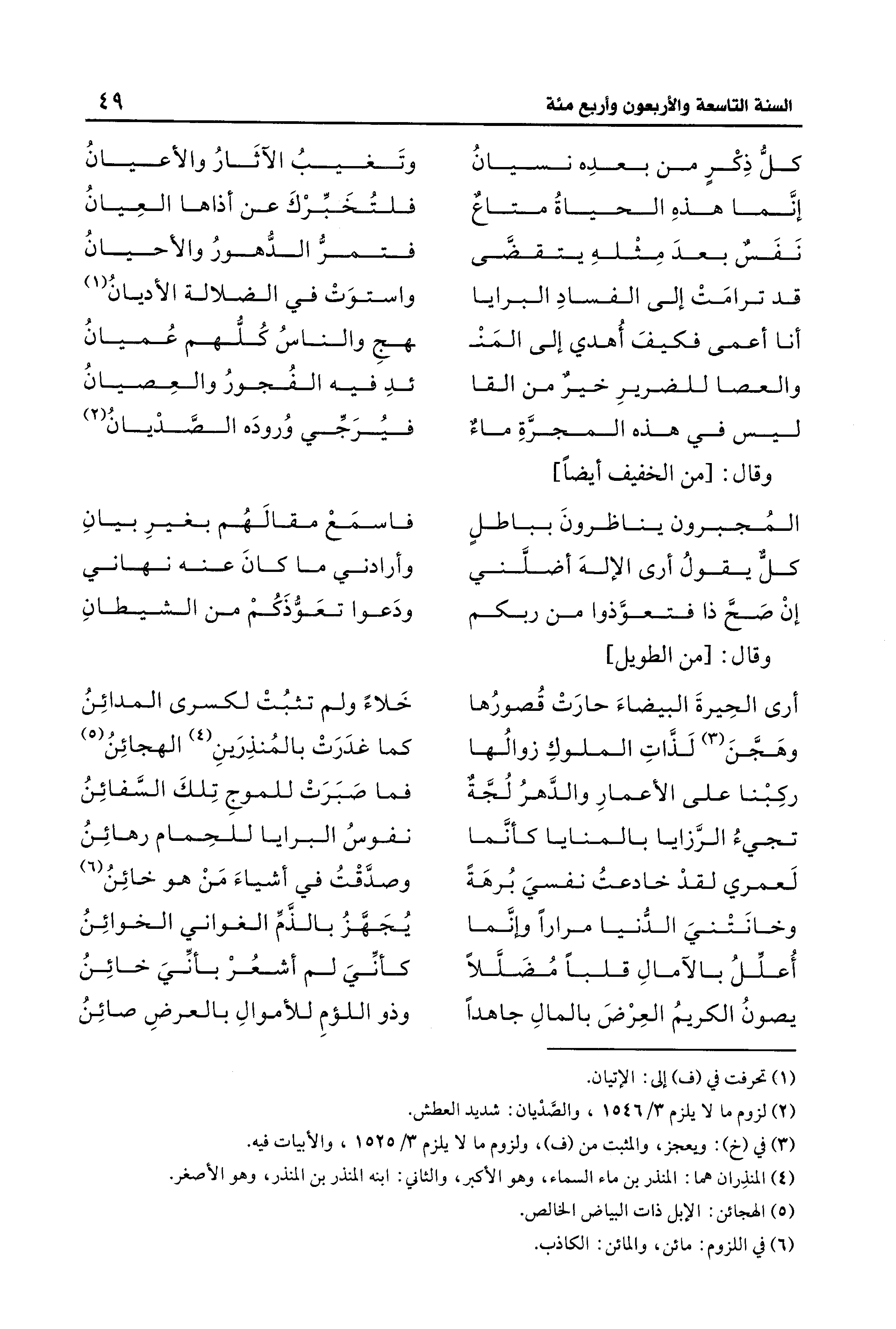 وهَجَّنَ (¬3) لَذَّاتِ الملوكِ زوالُها ... كما غدَرَتْ بالمُنذِرَينِ (¬4) الهجائِنُ (¬5)