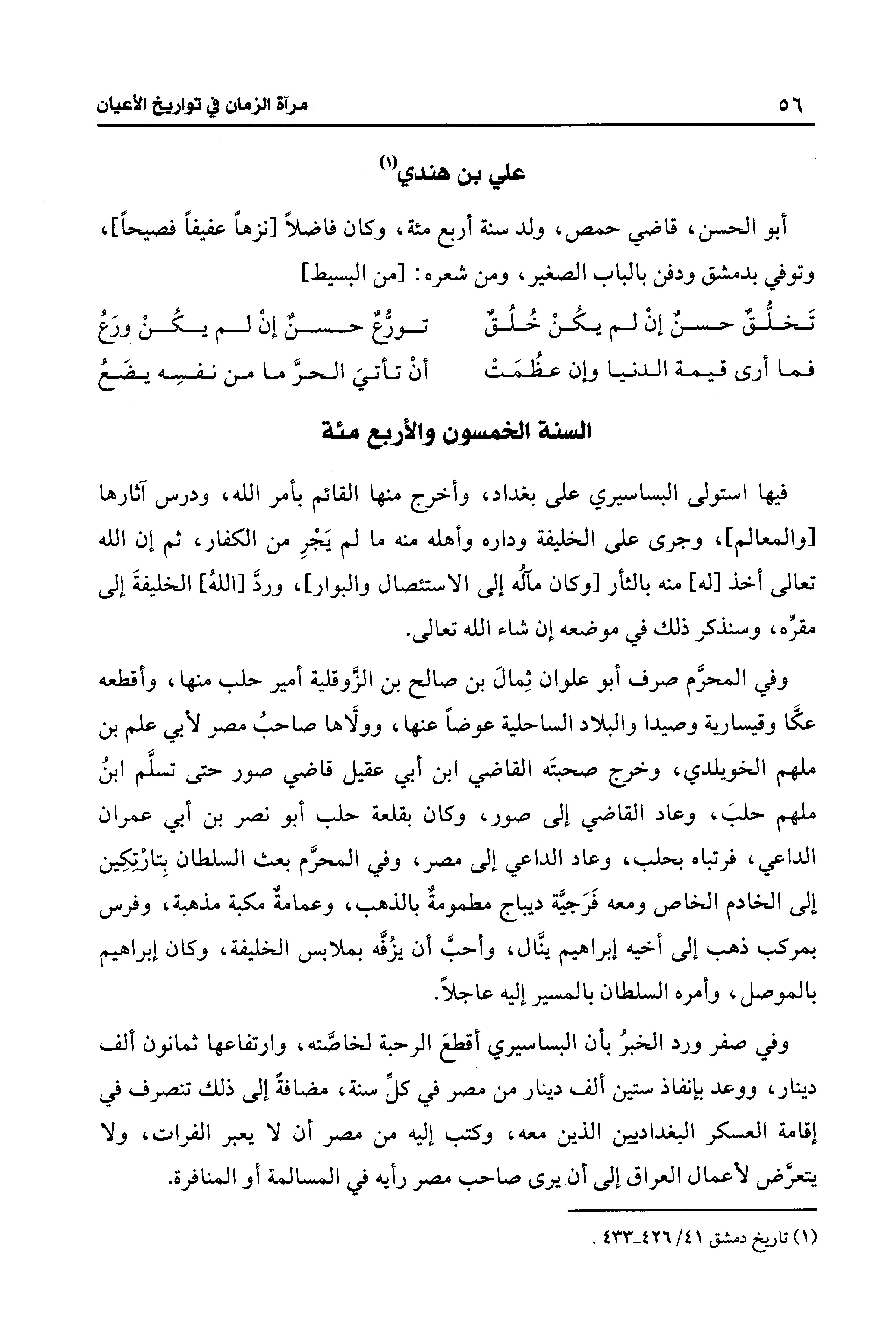 فيها استولى البساسيري على بغداد، وأخرج منها القائم بأمر الله، ودرس آثارها [والمعالم]، وجرى على الخليفة وداره وأهله منه ما لم يَجْرِ من الكفار، ثم إن الله تعالى أخذ [له] منه بالثأر [وكان مآلُه إلى الاستئصال والبوار]، وردَّ [اللهُ] الخليفةَ إلى مقرِّه، وسنذكر ذلك في موضعه إن شاء الله تعالى.
