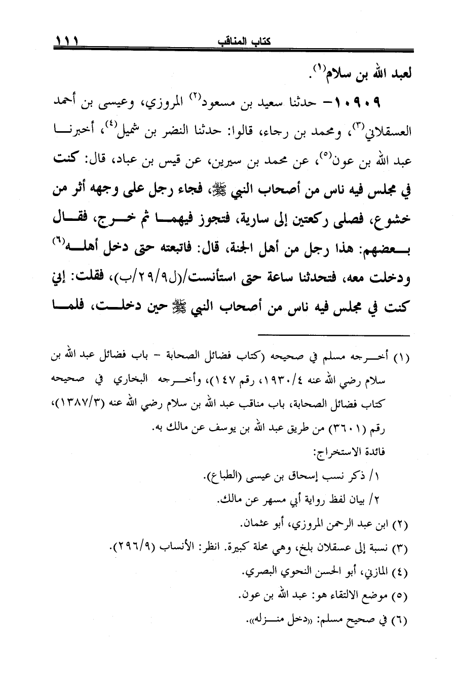 (¬7) أخرجه مسلم في صحيحه (كتاب فضائل الصحابة -باب فضائل عبد الله بن سلام رضي الله عنه 4/ 1930، رقم 148).