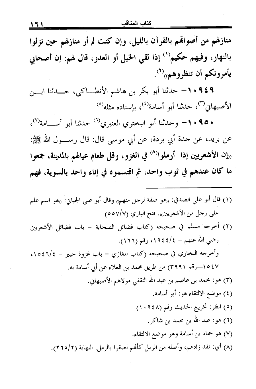 (¬4) أخرجه مسلم في صحيحه: (كتاب فضائل الصحابة -باب من فضائل الأشعريين رضي الله عنهم- 4/ 1944، رقم 167).