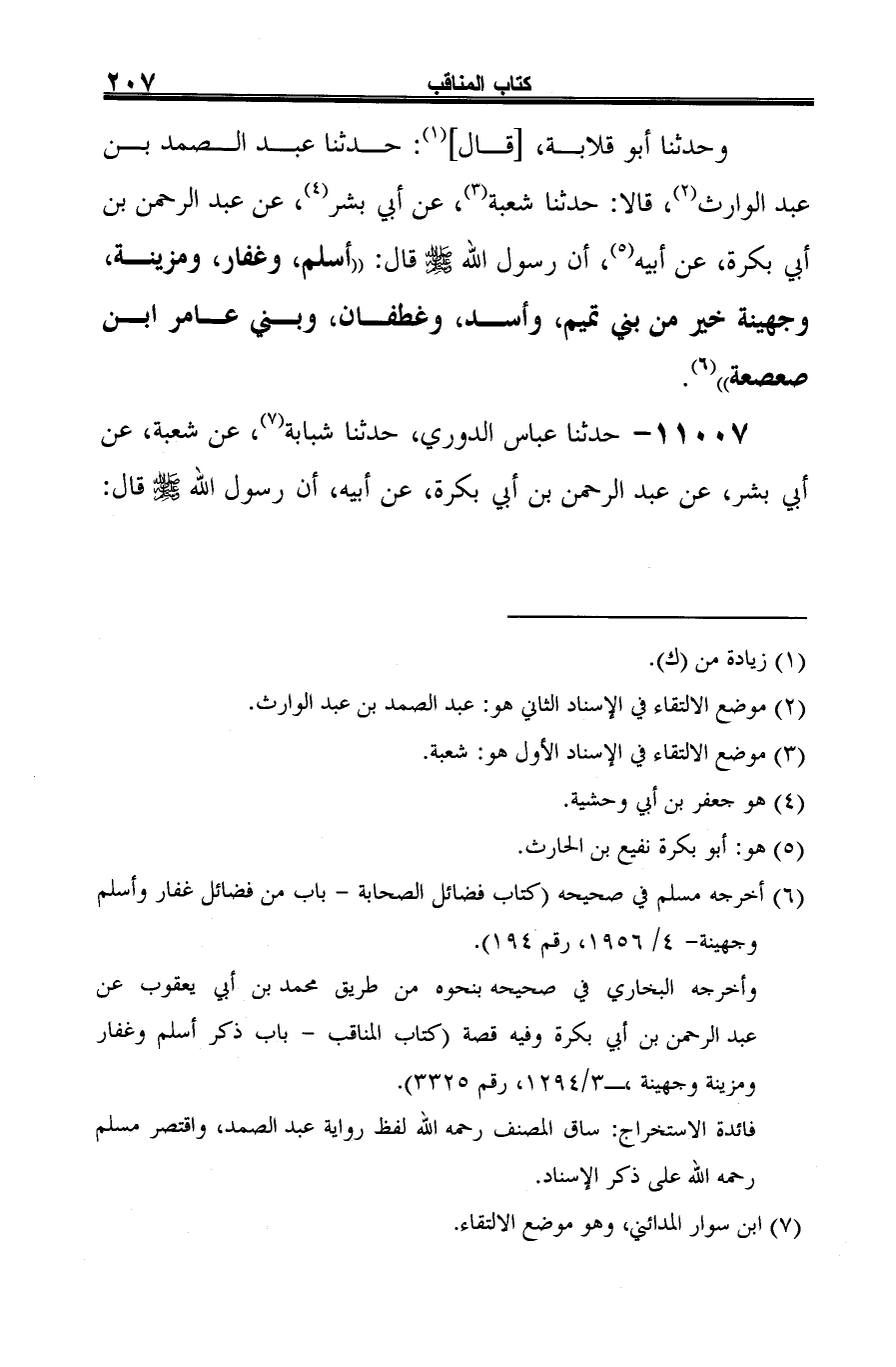 -[208]- "أسلم، وغفار، ومزينة خير من بني تميم، وأسد وغطفان" (¬2).