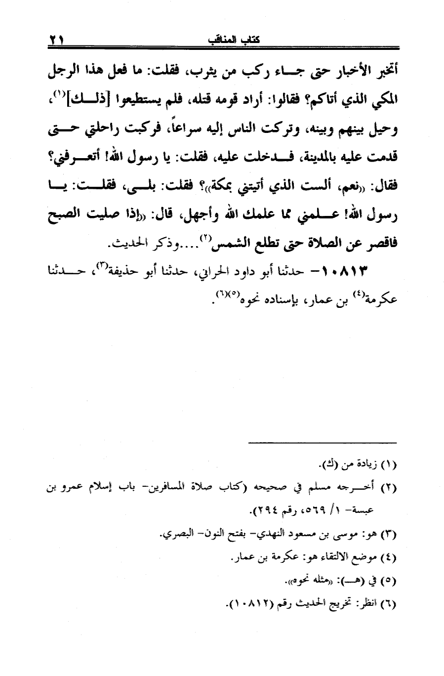 10813 - حدثنا أبو داود الحراني، حدثنا أبو حذيفة (¬1)، حدثنا عكرمة (¬2) بن عمار، بإسناده نحوه (¬3) (¬4).