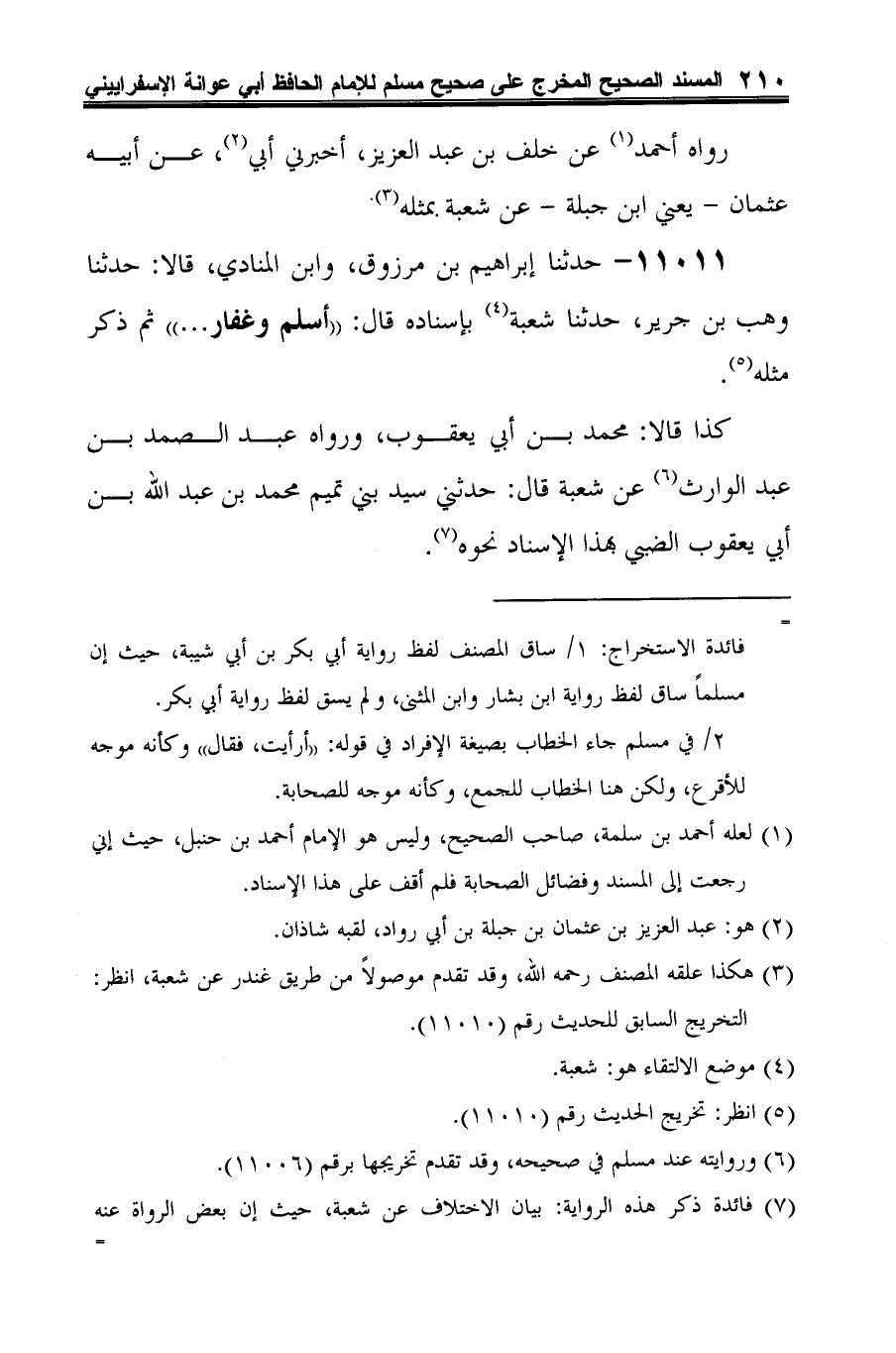 11011 - حدثنا إبراهيم بن مرزوق، وابن المنادي، قالا: حدثنا وهب بن جرير، حدثنا شعبة (¬1) بإسناده قال: "أسلم وغفار. . . " ثمَّ ذكر مثله (¬2).