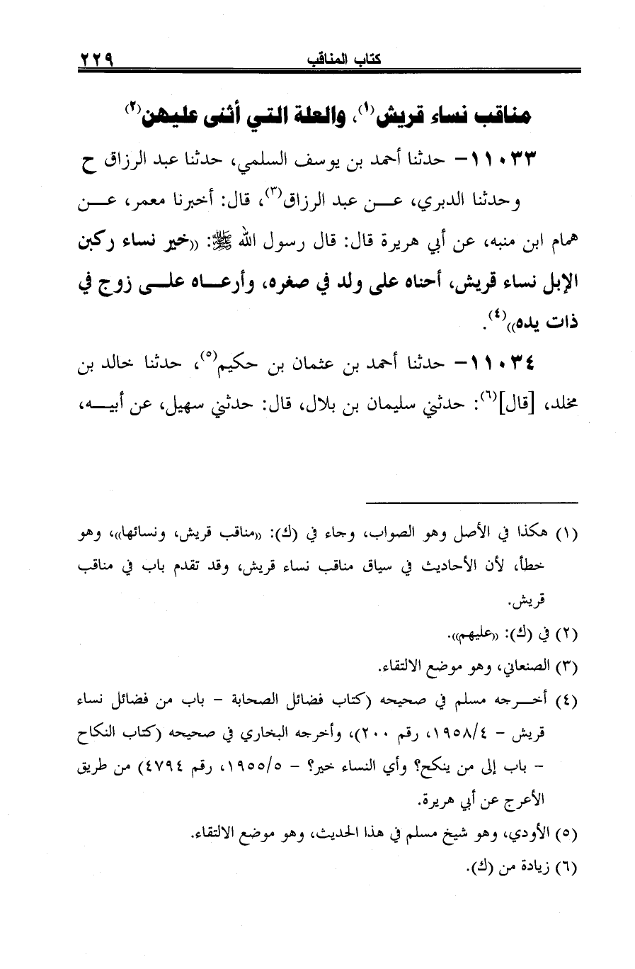 وحدثنا الدبري، عن عبد الرزاق (¬1)، قال: أخبرنا معمر، عن همام ابن منبه، عن أبي هريرة قال: قال رسول الله -صلى الله عليه وسلم-: "خير نساء ركبن الإبل نساء قريش، أحناه على ولد في صغره، وأرعاه على زوج في ذات يده" (¬2).