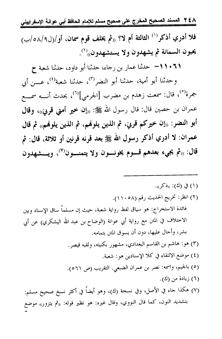 (¬6) أخرجه مسلم في صحيحه (كتاب فضائل الصحابة -باب فضل الصحابة ثمَّ الذين يلونهم ثمَّ الذين يلونهم- 4/ 1964، رقم 214).