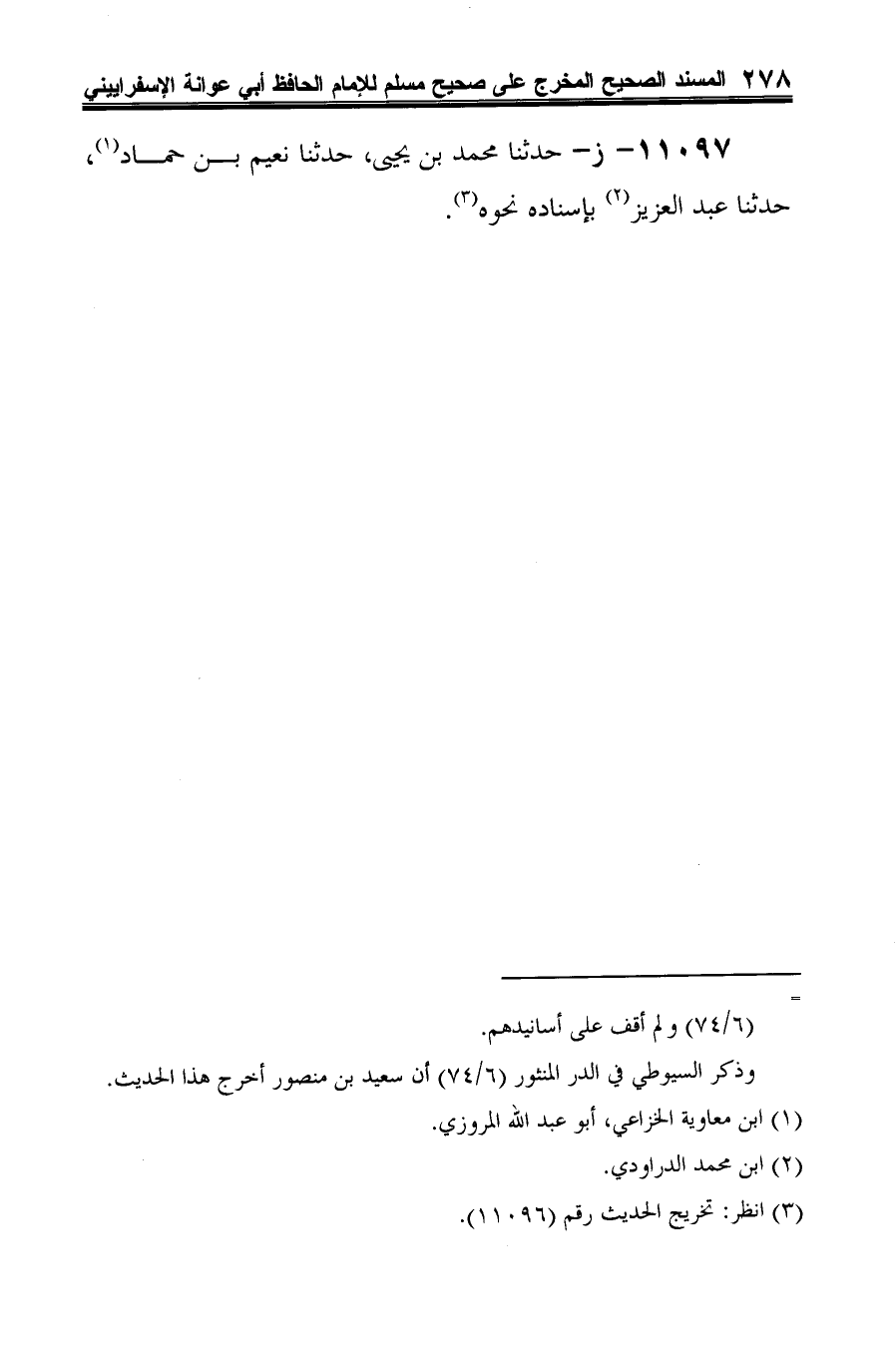 11097 - ز - حدثنا محمد بن يحيى، حدثنا نعيم بن حماد (¬1) حدثنا عبد العزيز (¬2) بإسناده نحوه (¬3).