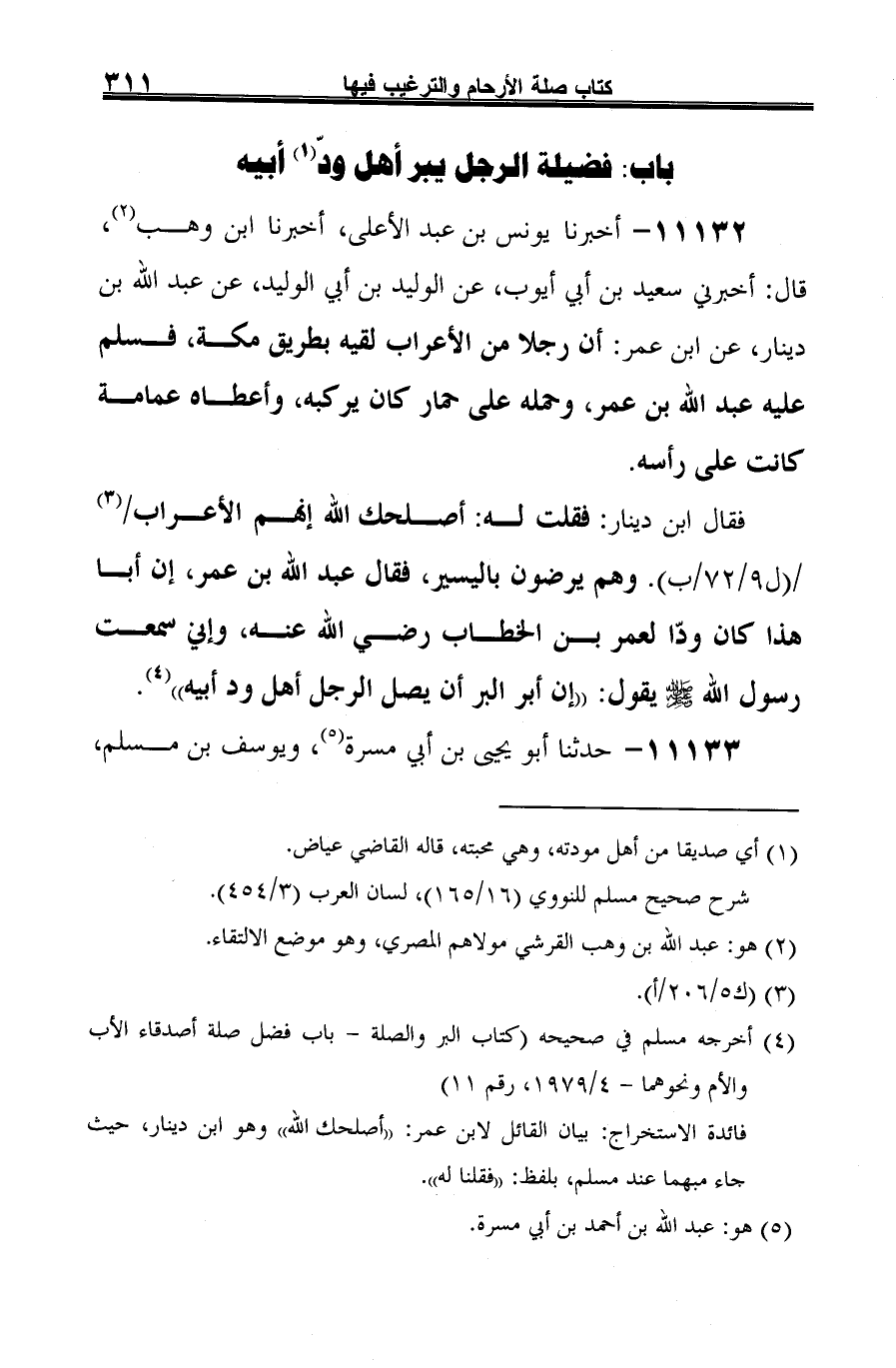 (¬3) أخرجه مسلم في صحيحه (كتاب البر والصلة -باب فضل صلة أصدقاء الأب والأم ونحوهما -4/ 1979، رقم 11).
