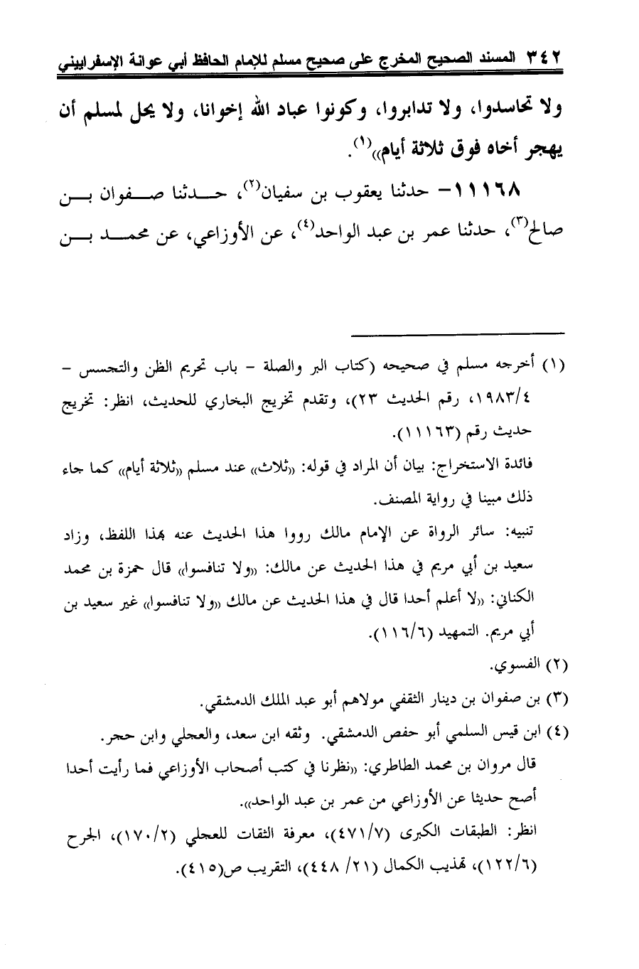 11168 - حدثنا يعقوب بن سفيان (¬1)، حدثنا صفوان بن صالح (¬2)، حدثنا عمر بن عبد الواحد (¬3)، عن الأوزاعي، عن محمَّد بن