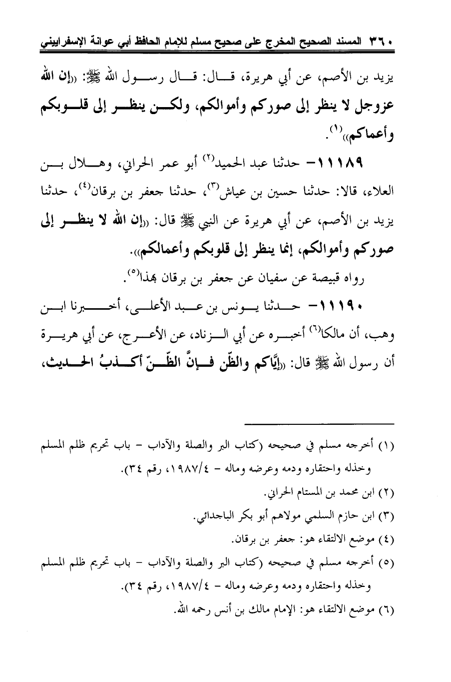 (¬4) أخرجه مسلم في صحيحه (كتاب البر والصلة والآداب -باب تحريم الظن والتجسس، والتنافس والتناجش ونحوها -4/ 1985، رقم 28).