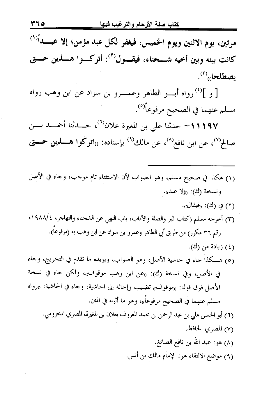 (¬6) أخرجه مسلم في صحيحه (كتاب البر والصلة والآداب -باب النهي عن الشحناء والتهاجر-4/ 1988، رقم 36 مكرر).