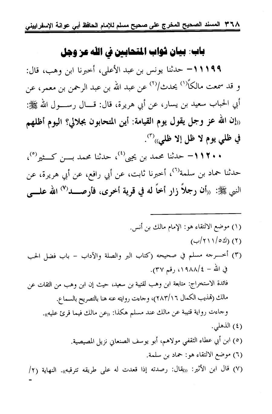 (¬3) أخرجه مسلم في صحيحه (كتاب البر والصلة والآداب -باب فضل الحب في الله-4/ 1988، رقم 37).