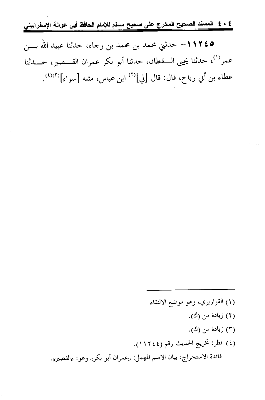 فائدة الاستخراج: بيان الاسم المهمل: "عمران أبو بكر" وهو: "القصير".