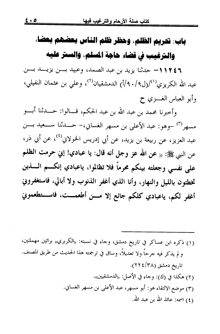 (¬10) أخرجه مسلم في صحيحه (كتاب البر والصلة والآداب، باب تحريم الظلم 4/ 1995، رقم 55 مكرر) من طريق أبي بكر بن محمد بن إسحاق الصغاني عن أبي مسهر به.