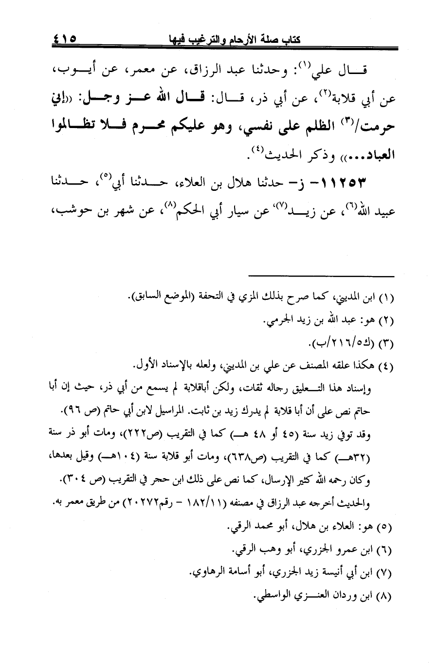 -[416]- عن عبد الرحمن بن غنم، أن أبا ذر (¬5)، حدثه عن رسول الله -صلى الله عليه وسلم- قال: "إن الله تعالى يقول: يا عبدي ما عبدتني ورجوتني فأنا غافر لك (¬6) ... " وذكر الحديث (¬7).