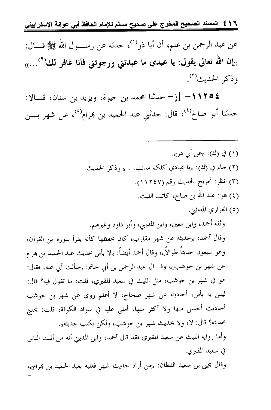 11254 - [ز- حدثنا محمَّد بن حيوة، ويزيد بن سنان، قالا: حدثنا أبو صالح (¬1)، قال: حدثني عبد الحميد بن بهرام (¬2)، عن شهر بن