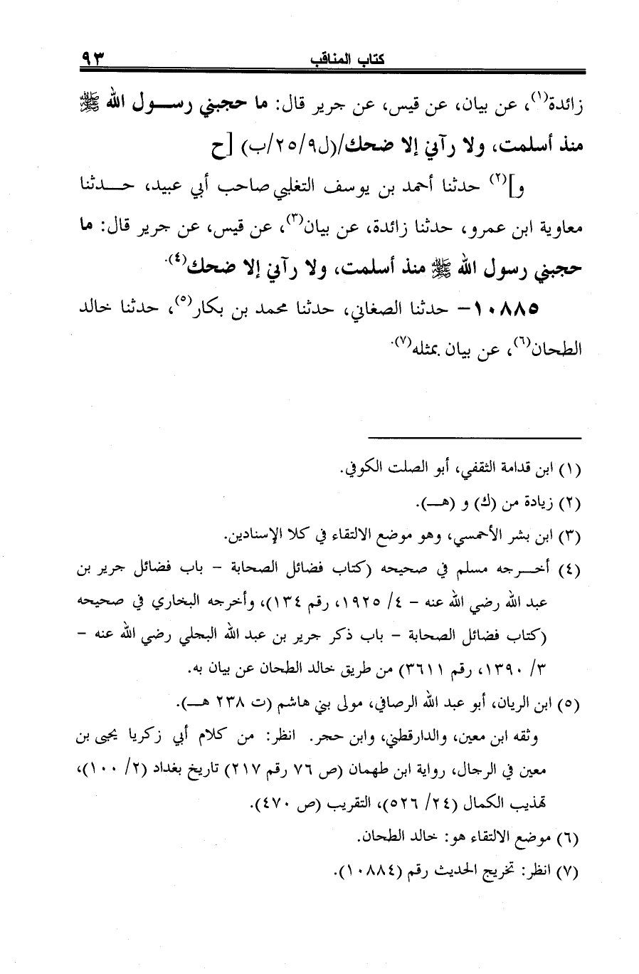 10885 - حدثنا الصغاني، حدثنا محمد بن بكار (¬1)، حدثنا خالد الطحان (¬2)، عن بيان بمثله (¬3)