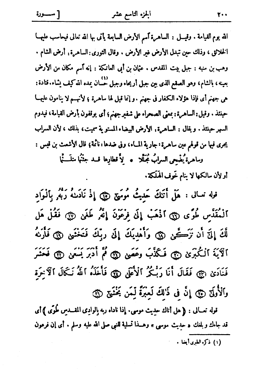 هَلْ أَتاكَ حَدِيثُ مُوسى (١٥) إِذْ ناداهُ رَبُّهُ بِالْوادِ الْمُقَدَّسِ طُوىً (١٦) اذْهَبْ إِلى فِرْعَوْنَ إِنَّهُ طَغى (١٧) فَقُلْ هَلْ لَكَ إِلى أَنْ تَزَكَّى (١٨) وَأَهْدِيَكَ إِلى رَبِّكَ فَتَخْشى (١٩)