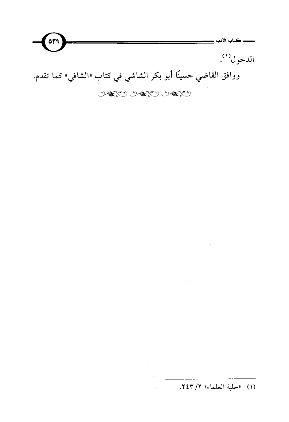 ووافق القاضي حسينًا أبو بكر الشاشي في كتاب "الشافي" كما تقدم.