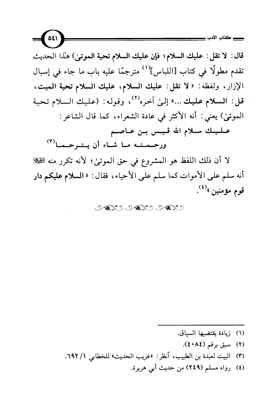 قال: لا تقل: عليك السلام؛ فإن عليك السلام تحية الموتى) هذا الحديث تقدم مطولًا في كتاب [اللباس] (¬1) مترجمًا عليه باب ما جاء في إسبال الإزار، ولفظه: "لا تقل: عليك السلام، عليك السلام تحية الميت، قل: السلام عليك. . . " إلى آخره (¬2)، وقوله: (عليك السلام تحية الموتى) يعني: أنه الأكثر في عادة الشعراء، كما قال الشاعر: