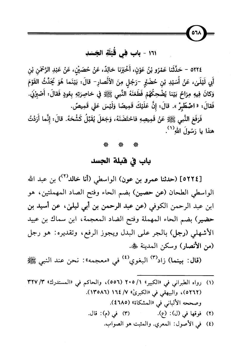 [5224] (حدثنا عمرو بن عون) الواسطي (أنا خالد) (¬2) بن عبد اللَّه الواسطي الطحان (عن حصين) بضم الحاء وفتح الصاد المهملتين، هو ابن عبد الرحمن الكوفي (عن عبد الرحمن بن أبي ليلى، عن أسيد بن حضير) بضم الحاء المهملة وفتح الضاد المعجمة، ابن سماك بن عبيد الأشهلي (رجل) بالجر على البدل ويجوز الرفع، وتقديره: هو رجل (من الأنصار) وسكن المدينة -رضي اللَّه عنهم-.