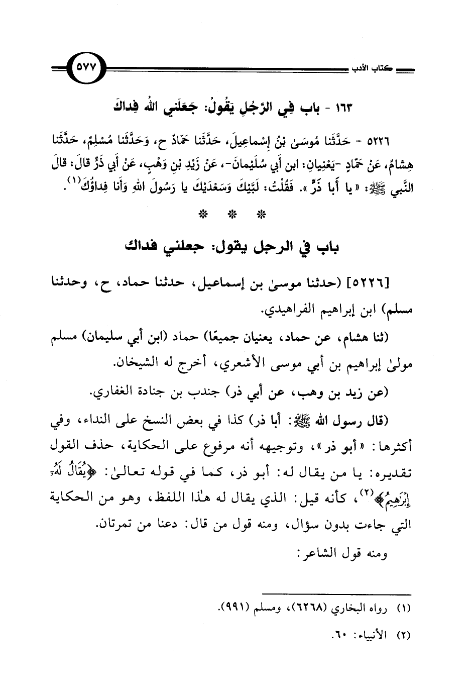[5226] (حدثنا موسى بن إسماعيل، حدثنا حماد، ح، وحدثنا مسلم) ابن إبراهيم الفراهيدي.