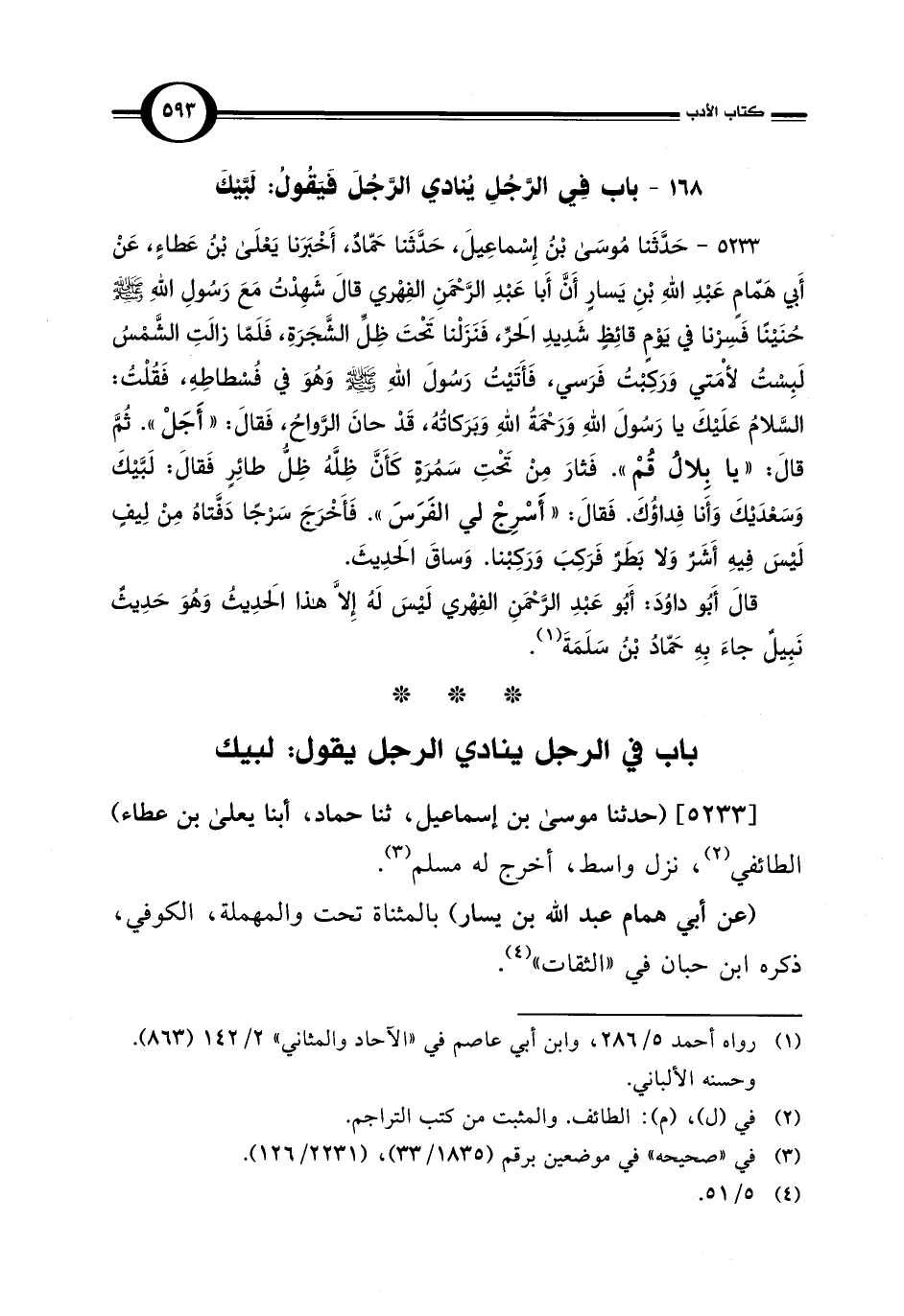 باب في الرجل ينادي الرجل يقول: لبيك