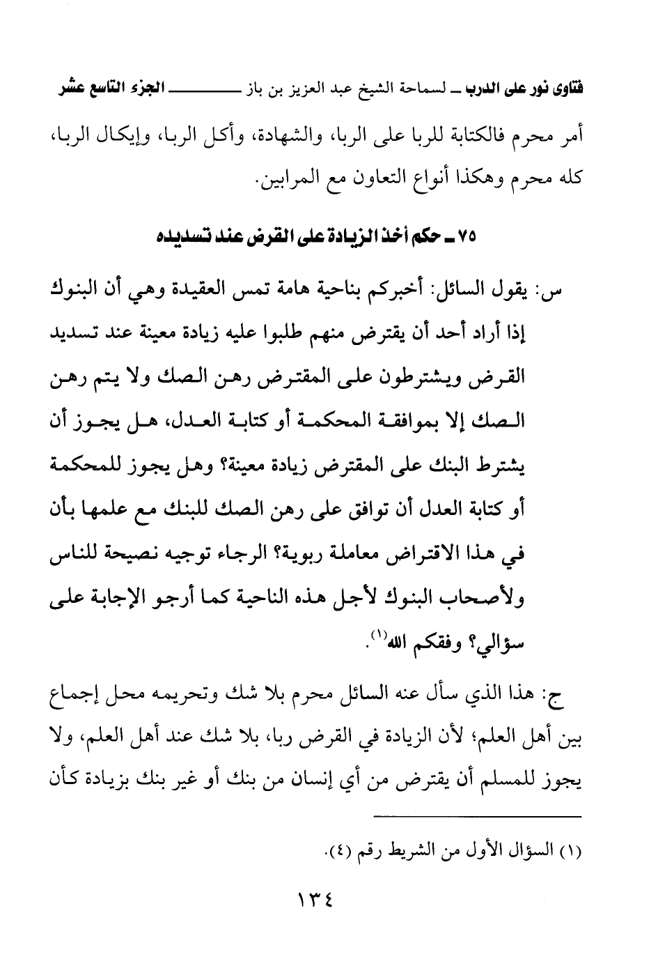 75 - حكم أخذ الزيادة على القرض عند تسديده