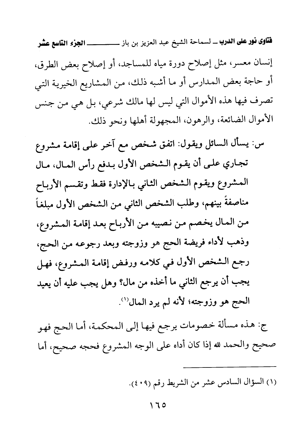 س: يسأل السائل ويقول: اتفق شخص مع آخر على إقامة مشروع تجاري على أن يقوم الشخص الأول بدفع رأس المال، مال المشروع ويقوم الشخص الثاني بالإدارة فقط وتقسم الأرباح مناصفةً بينهم، وطلب الشخص الثاني من الشخص الأول مبلغًا من المال يخصم من نصيبه من الأرباح بعد إقامة المشروع، وذهب لأداء فريضة الحج هو وزوجته وبعد رجوعه من الحج، رجع الشخص الأول في كلامه ورفض إقامة المشروع، فهل يجب أن يرجع الثاني ما أخذه من مال؟ وهل يجب عليه أن يعيد الحج هو وزوجته؛ لأنه لم يرد المال.