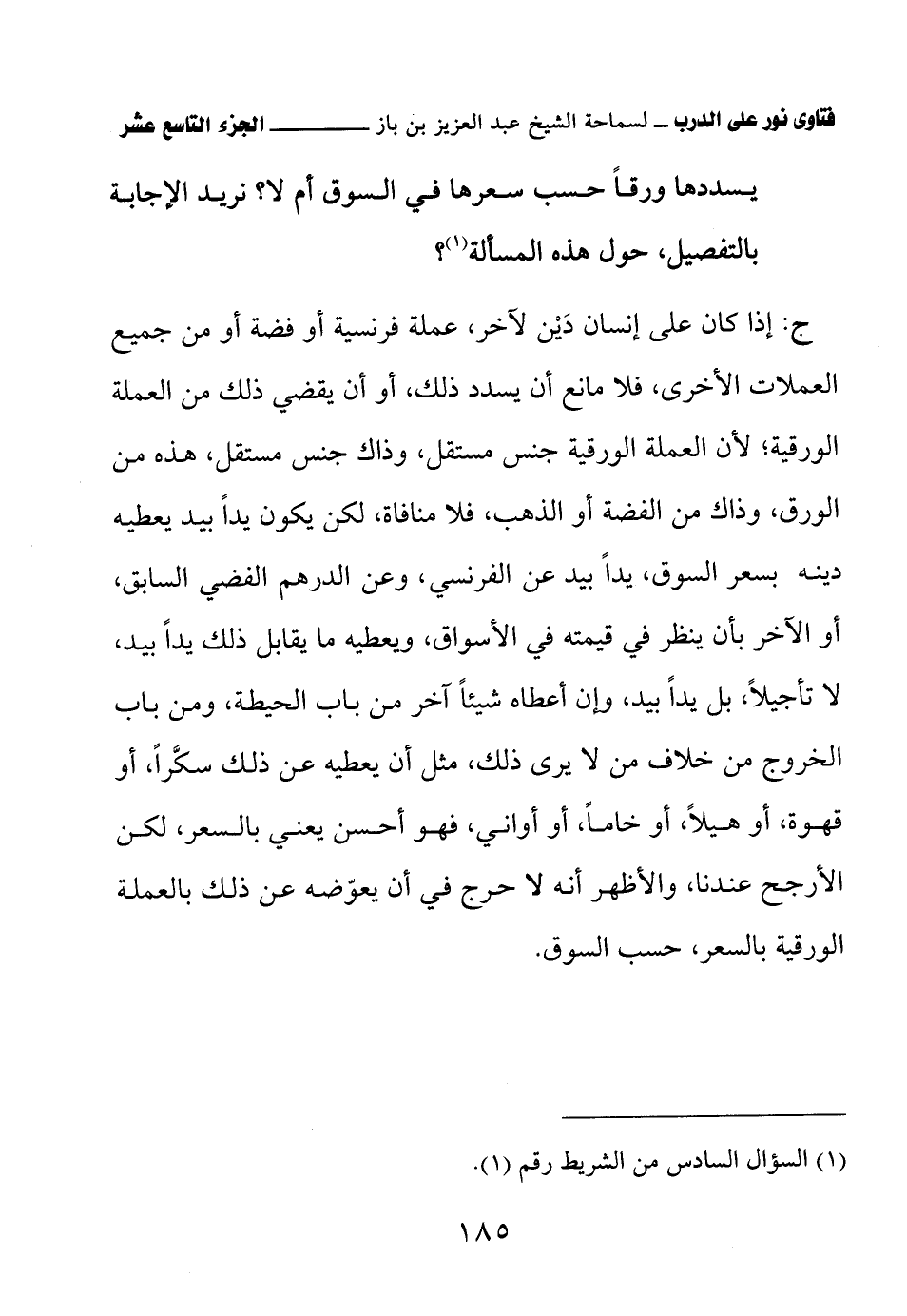 يسددها ورقًا حسب سعرها في السوق أم لا؟ نريد الإجابة بالتفصيل، حول هذه المسألة (¬1)؟